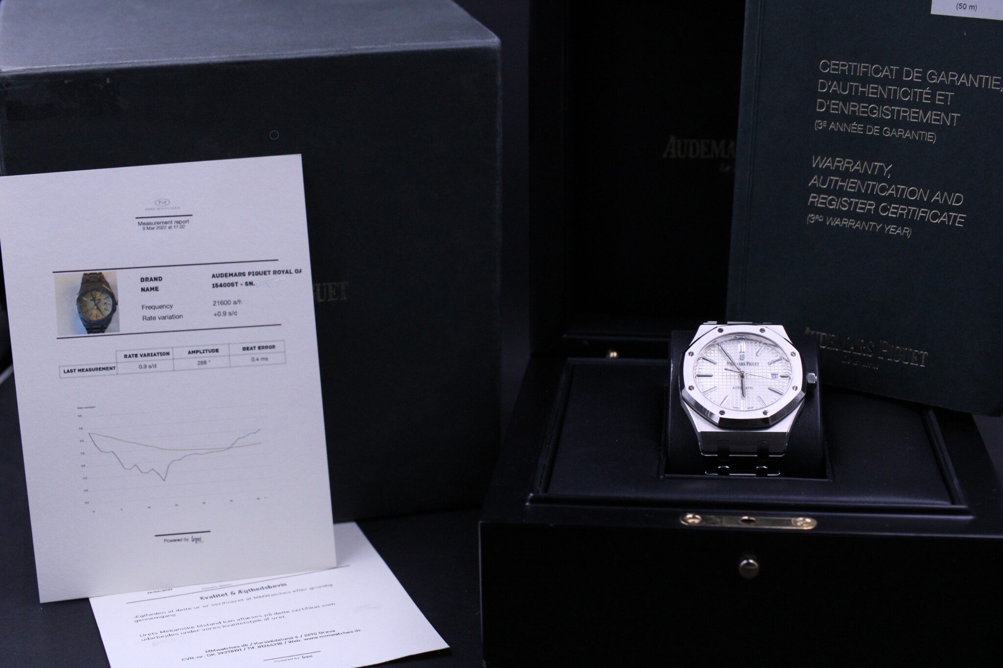 Med til dette ur medfølger MMwatches ”Kvalitet og ægthedsbevis”. Gennem vores grundige gennemgang af uret, fastslår vi at uret er 100% originalt. Urets mekaniske tilstand er testet og lever op til vores kvalitetskrav. Målingerne kan ses i det medfølgende bevis.