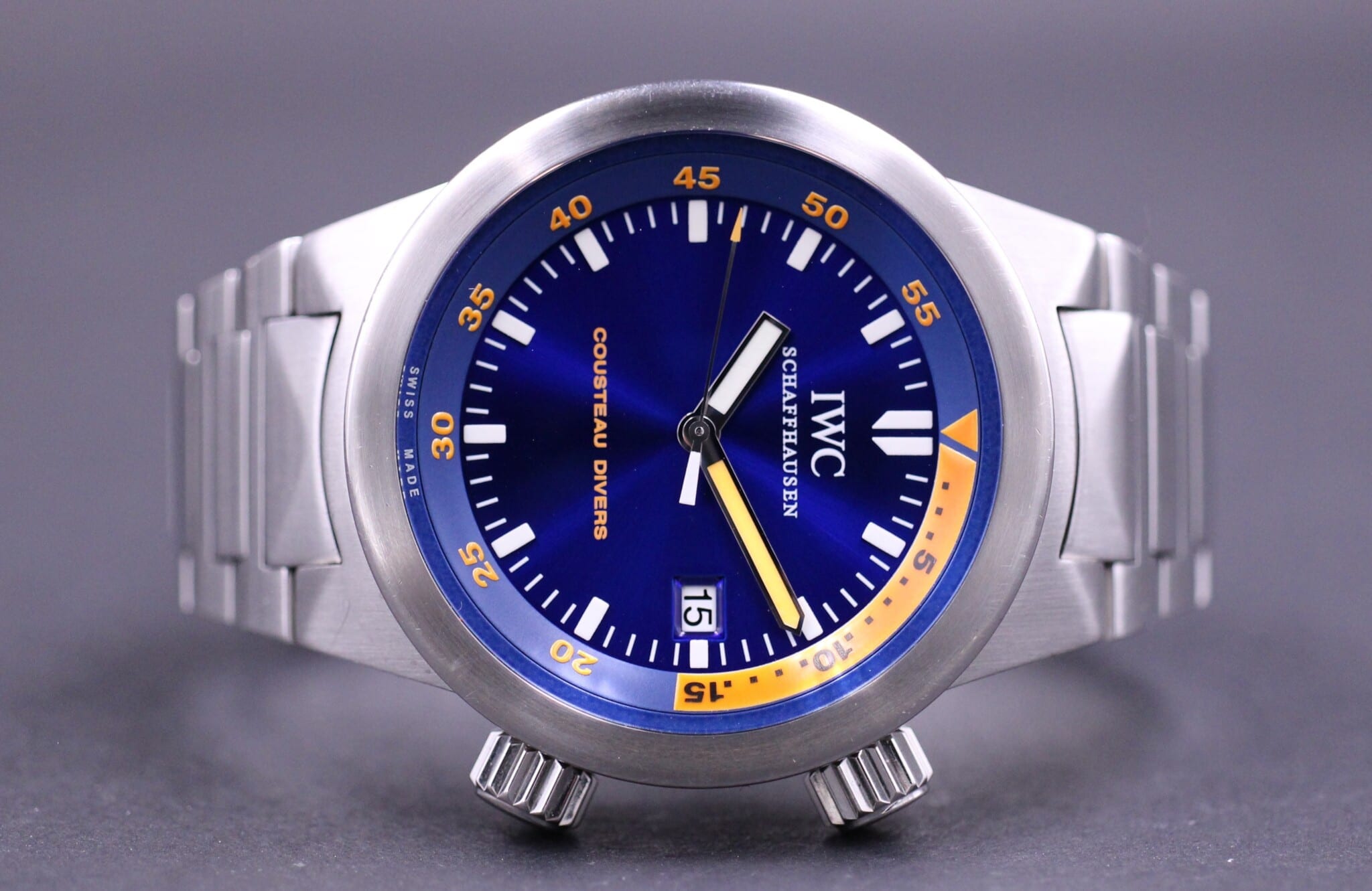 Utrolig lækkert dykkerur fra IWC. Uret måler 42mm og er meget komfortabel at gå med. Skiven har en flot blå farve, som nuancerer utrolig meget afhængigt af lyset.