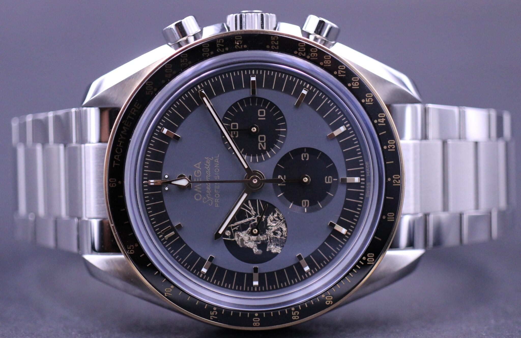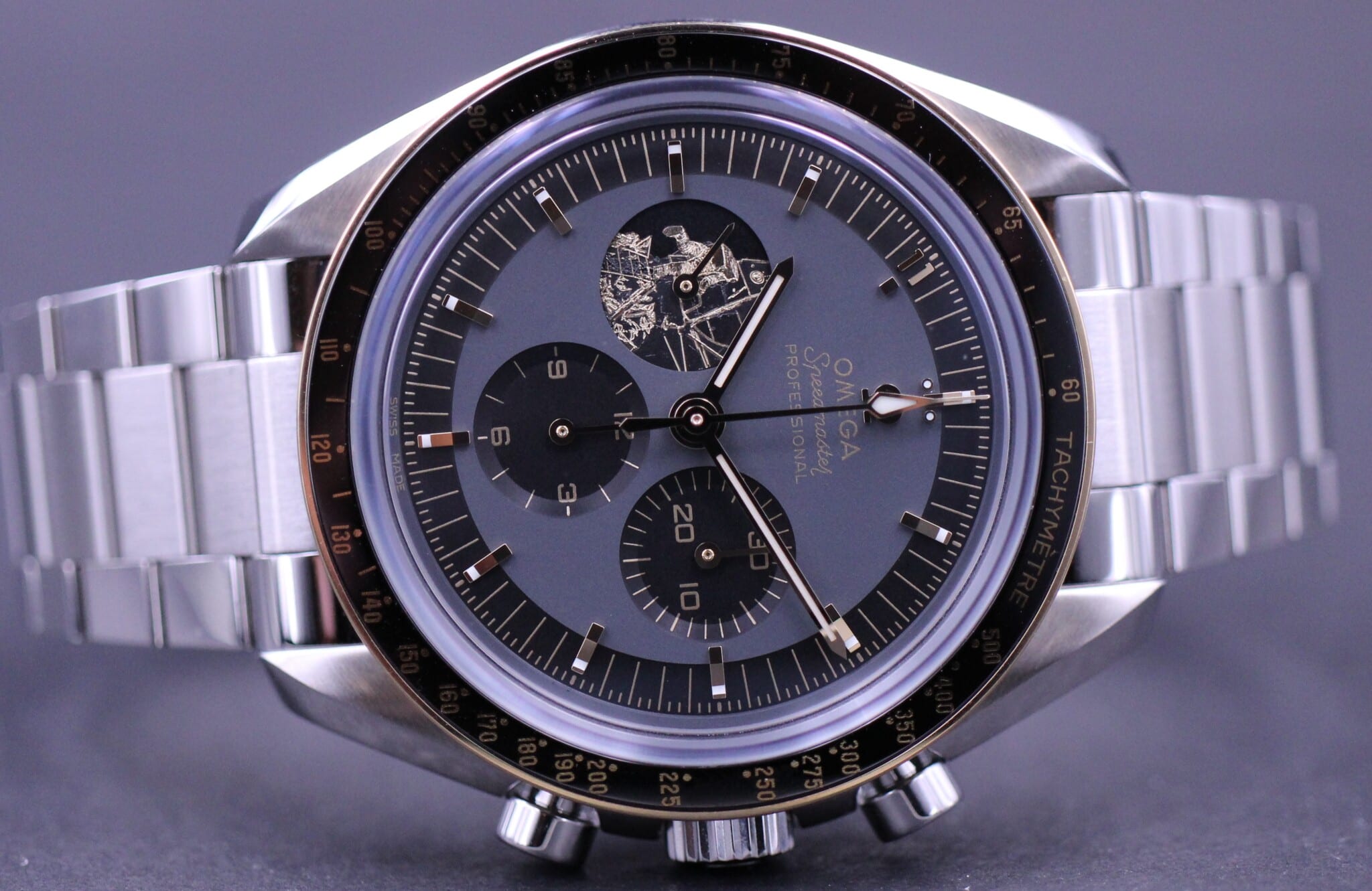 Uret er i stål med sort keramisk lynette og 18kt. Moonshine gold bezel. Urskiven er lakeret i sort&grå med alle indeks i 18kt Moonshine guld – Unik timemarkør placeret kl. 11. Bagkassen af uret afsløre adskille indgraveringer, bl.a. det kendte astronauts fodaftryk og teksten “THAT’S ONE SMALL STEP FOR A MAN” og “ONE GIANT LEAP FOR MANKIND”