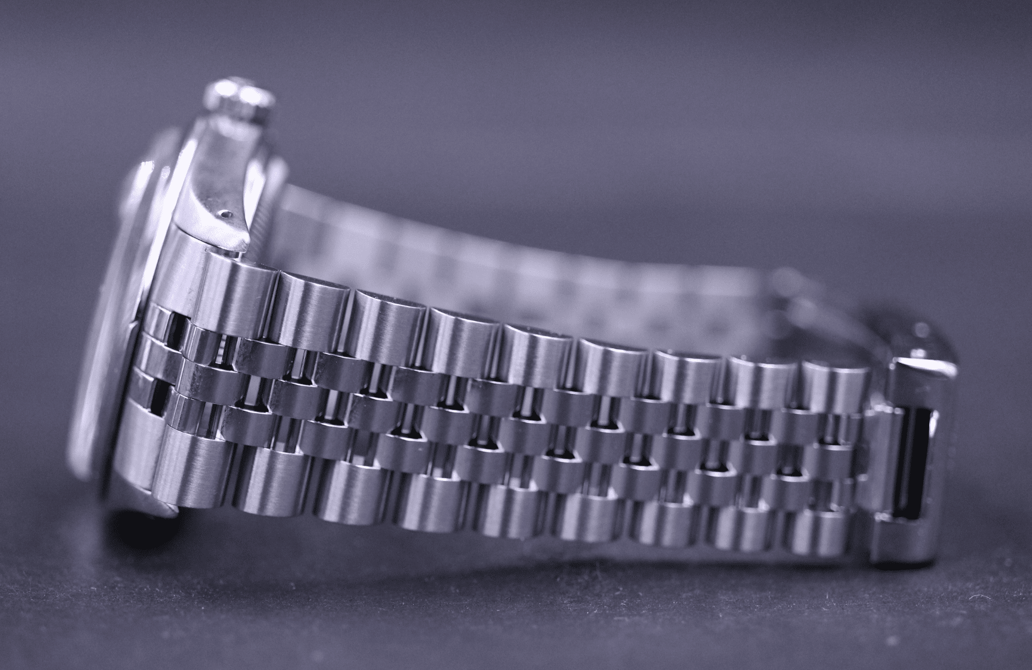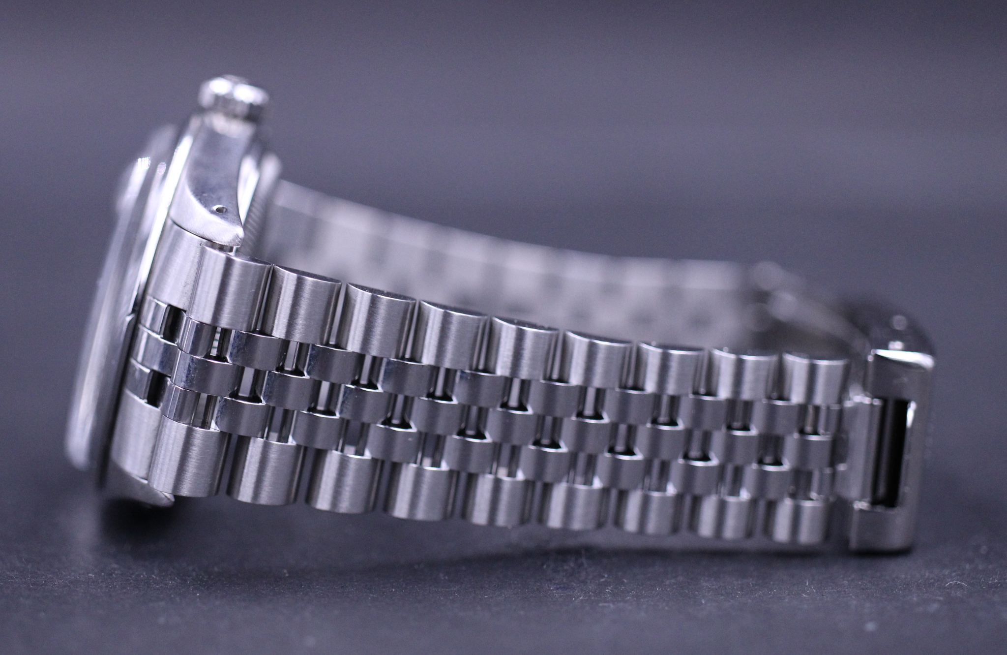 Klassisk Datejust model i 36mm, her med en flot hvid skive samt smooth stål lynette. Uret er monteret på en ny Jubilee lænke.
