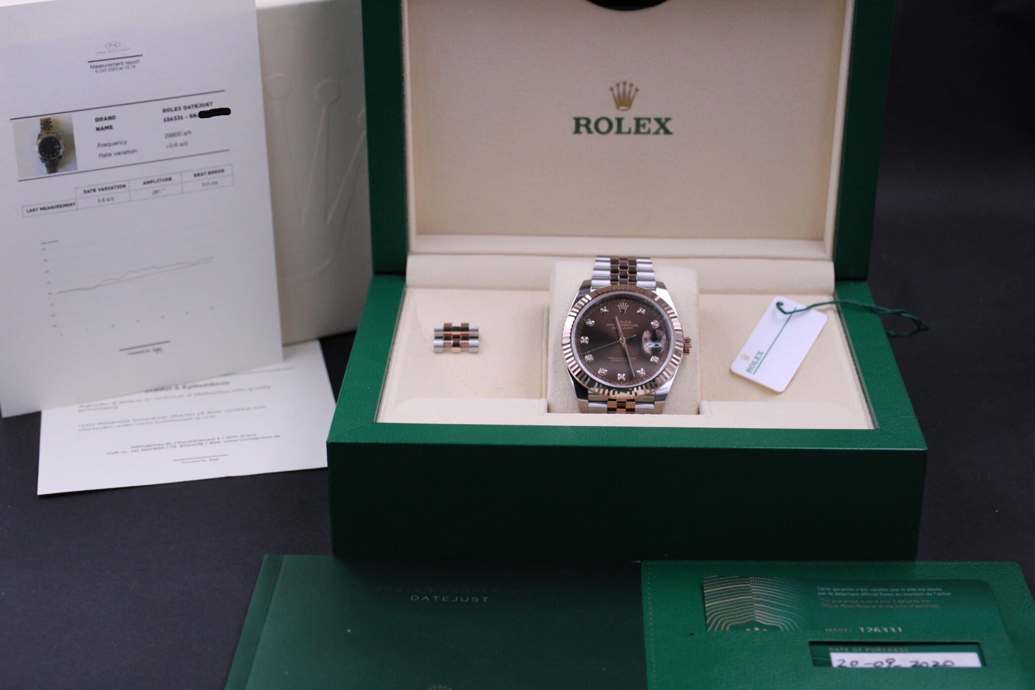 Rolex Datejust 41mm, ref. 126331 fra september 2020 og dermed omfattet af Rolex World Wide Garanti til 2025. Uret er 100% fabriksnyt.