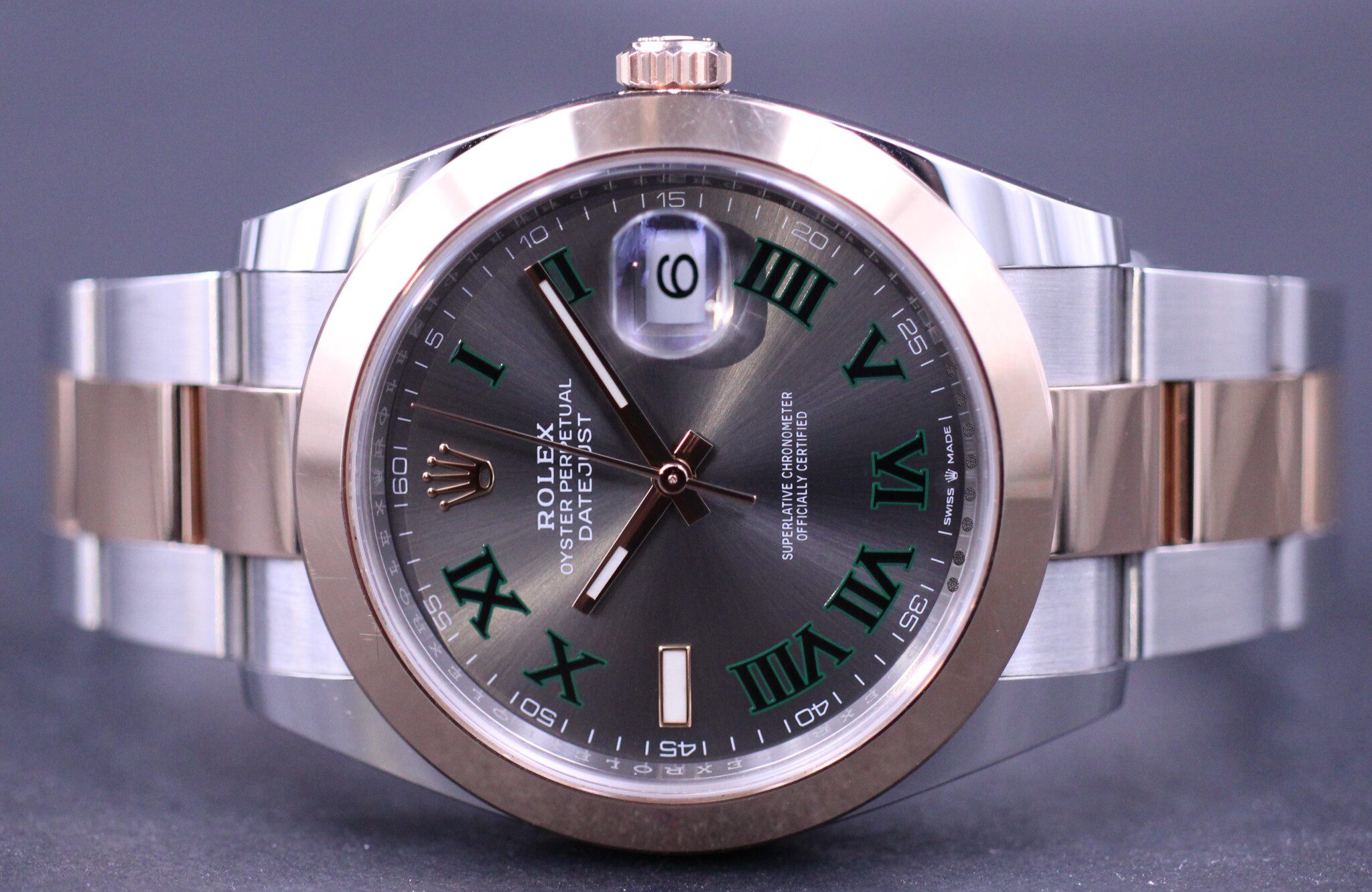 Den seneste 41mm udgave, af den velkendte og klassiske Datejust model, her i stål og Everose guld med flot Wimbledon skive samt glat lynette. Uret er monteret på oyster lænke. Låsen i lænken er med extension link, der gør det muligt at justere spændet 5mm.