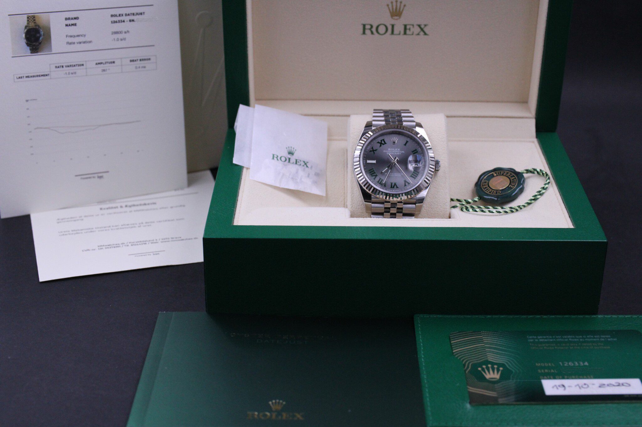 Mærke: Rolex Model: Datejust 41 Ref. nr.: 126334 Årgang: 2020 Tilbehør: Boks, papirer & certifikat Funktioner: Dato Størrelse: 41mm Stand: 90%