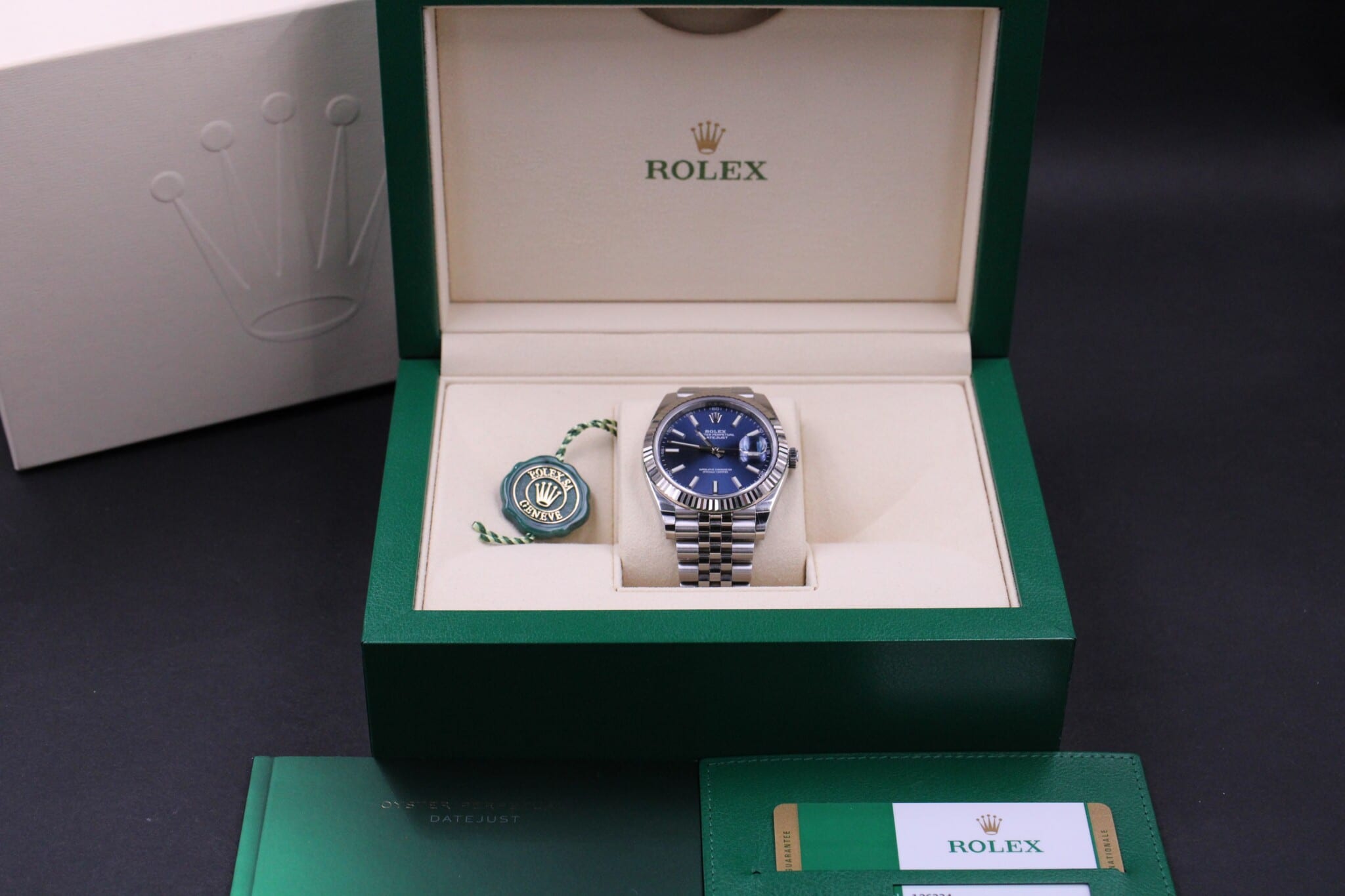 Rolex Datejust 41, ref. 126334 fra 2019 og dermed omfattet af Rolex World Wide Garanti til 2024.