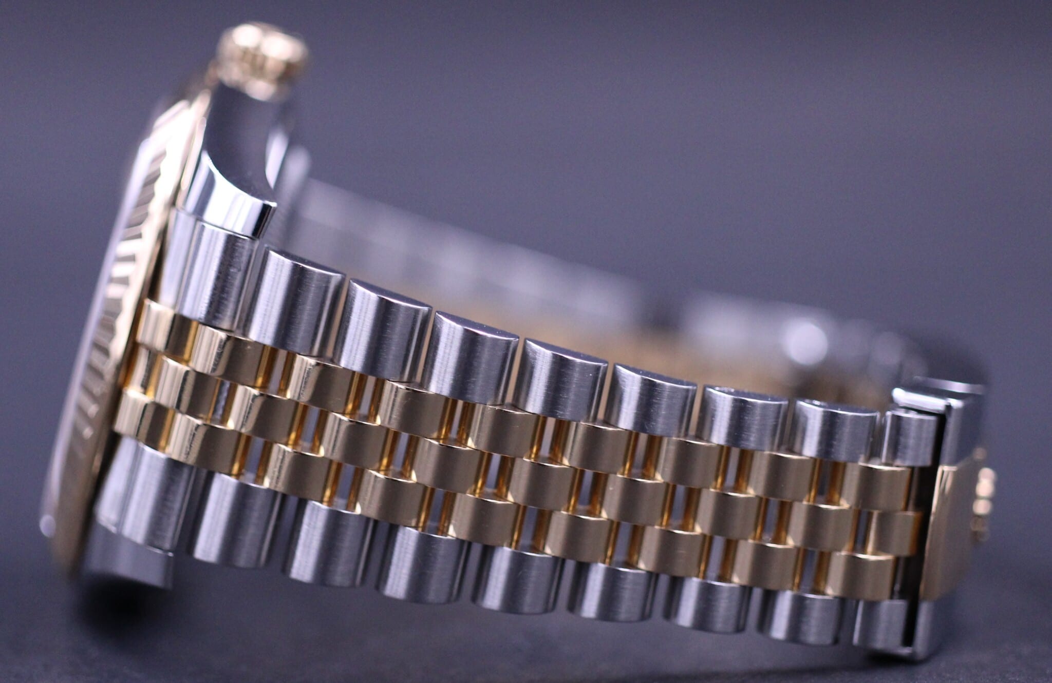 Klassisk Datejust model i 41mm, her med en flot sort sunburst skive som passer perfekt til urets guld og stål. Uret er monteret på jubilee bracelet.