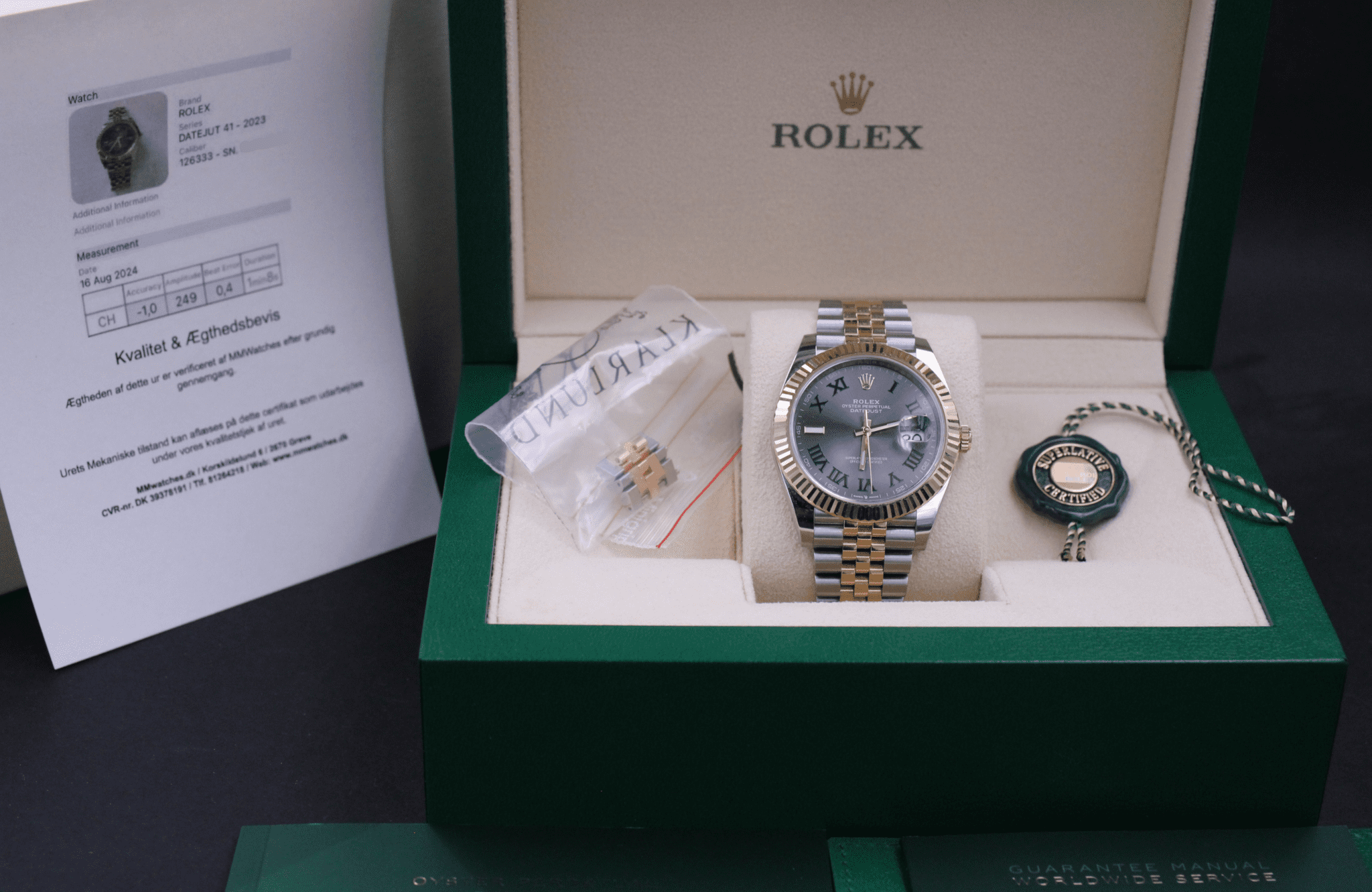 Rolex Datejust II 41mm, ref. 126333 fra 2023. Omfattet af Rolex World Wide Garanti til af 2028.