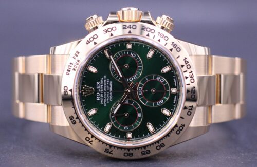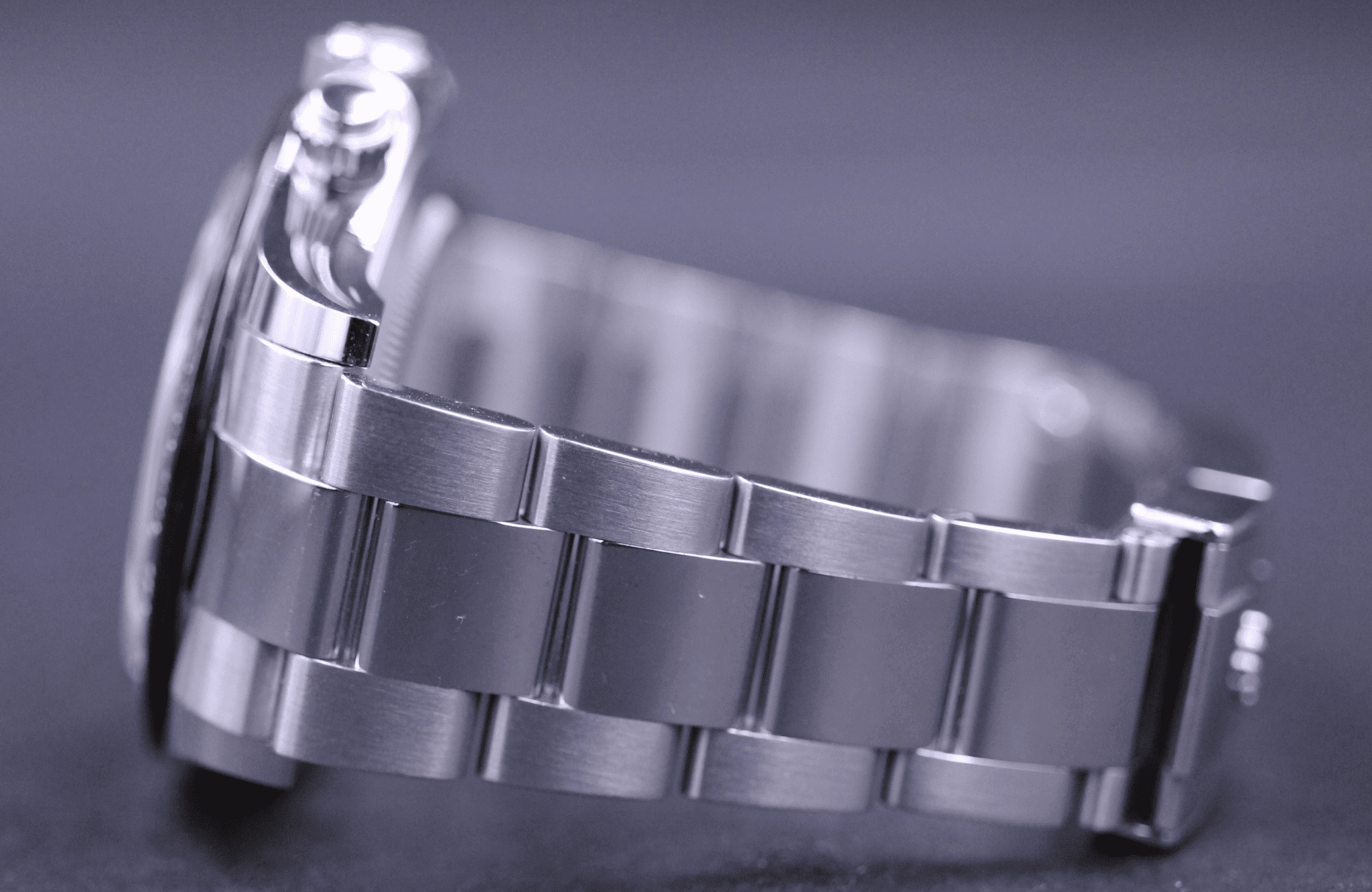 Uret måler de klasssike 40mm og er udstyret med en brun keramisk tachymeter lynette, safirglas samt platin Oyster lænke med Easylink, der giver mulighed for 5mm mikrojustering.