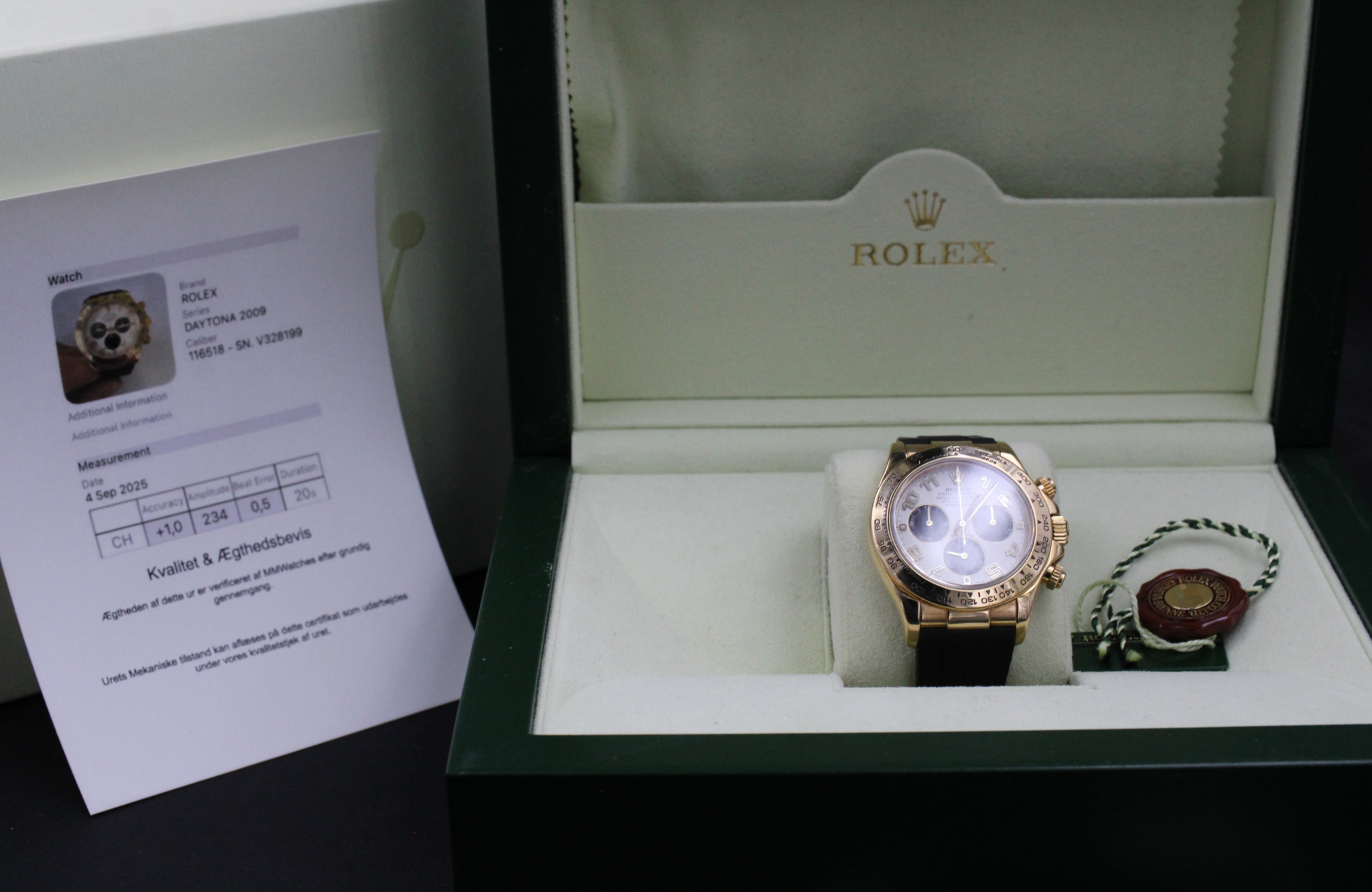 Rolex Daytona 18K guld, ref. 116518LN fra 2009 (V-serie). Uret er i flot stand.