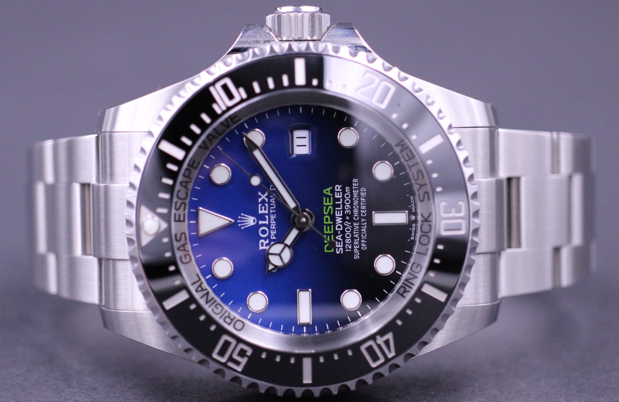 Den nye og allerede super populære Deepsa Sea-Dweller, der blev introduceret på Basel 2018. Uret er den opgraderet version fra “116660” hvor vi nu har fået nye dimensioner så kassen integreres bedre med lænken, samt det nyere COSC certificerede Cal. 3235 værk med gangreserve på 72 timer. Uret måler 44mm.