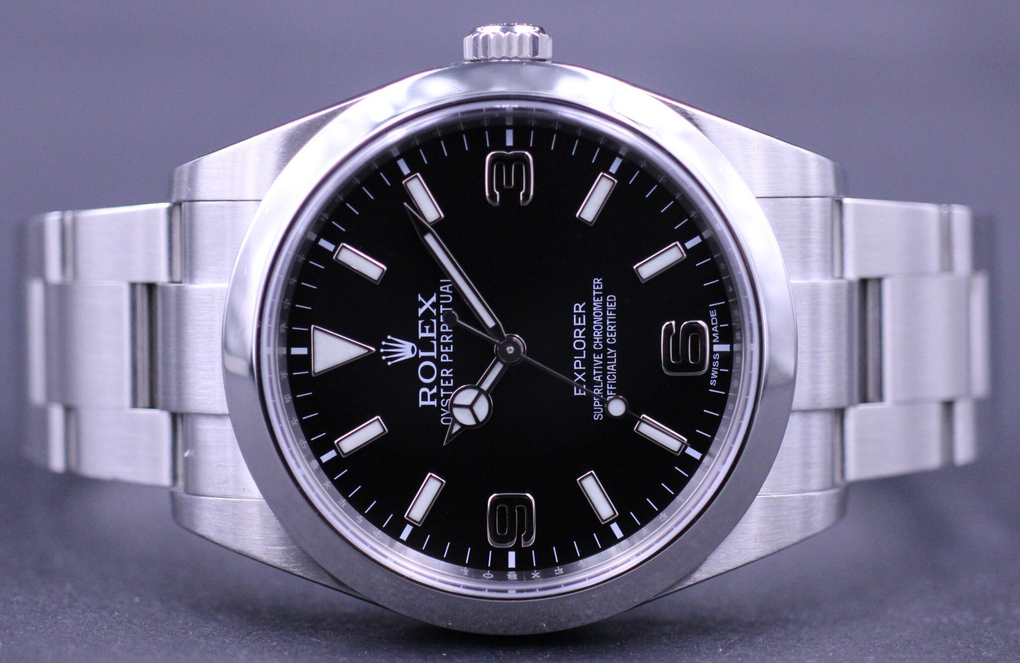 Nu udgået Explorer model med “MK1” skiven med 3, 6 og 9 markører i hvidguld.