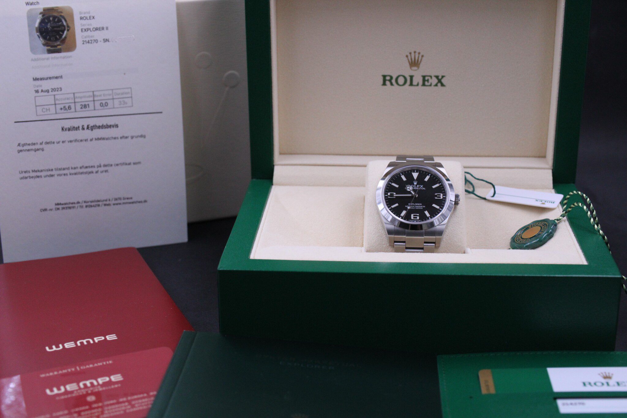 Med til dette ur medfølger MMwatches ”Kvalitet og ægthedsbevis”. Gennem vores grundige gennemgang af uret, fastslår vi at uret er 100% originalt. Urets mekaniske tilstand er testet og lever op til vores kvalitetskrav. Målingerne kan ses i det medfølgende bevis.