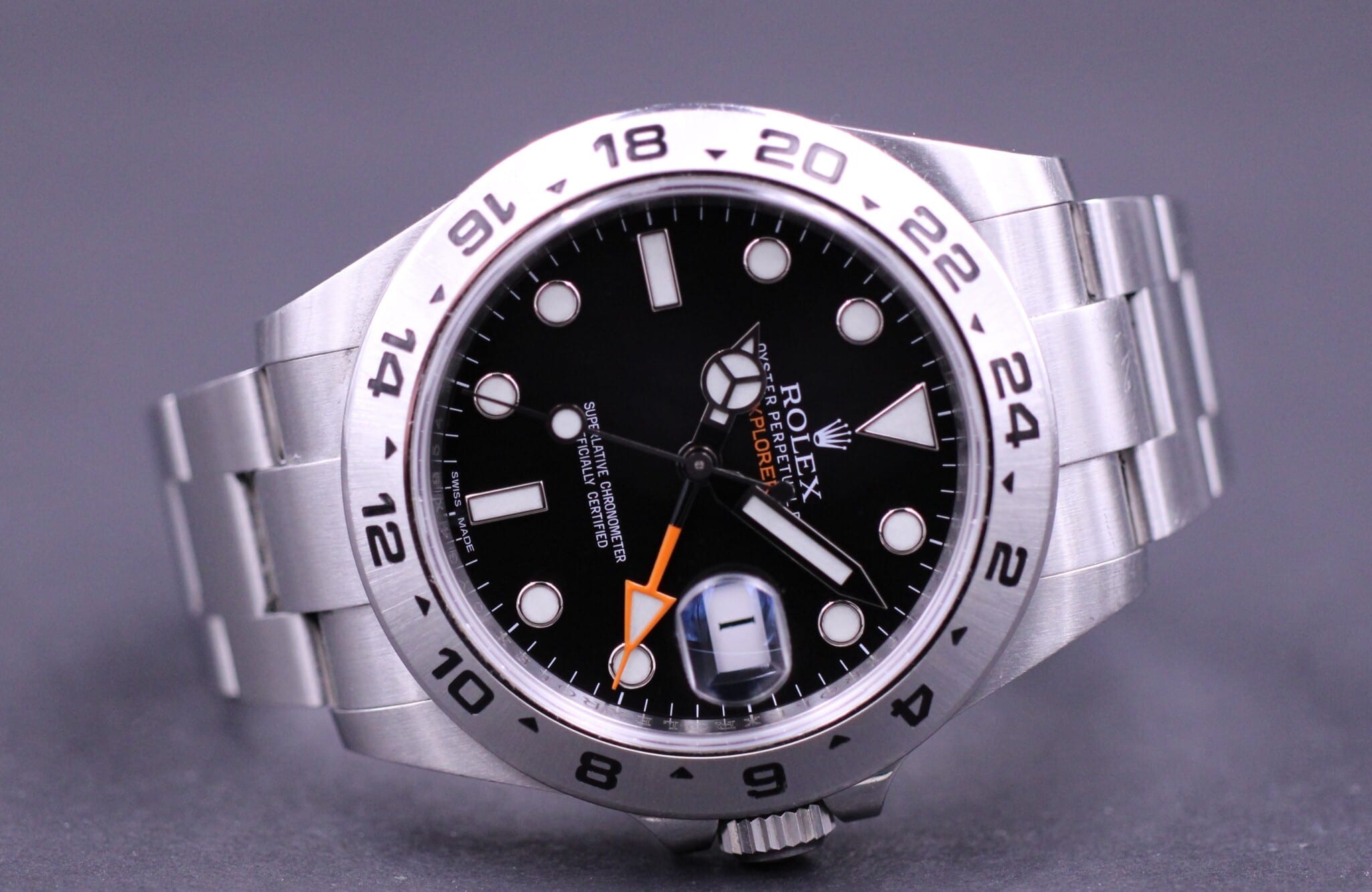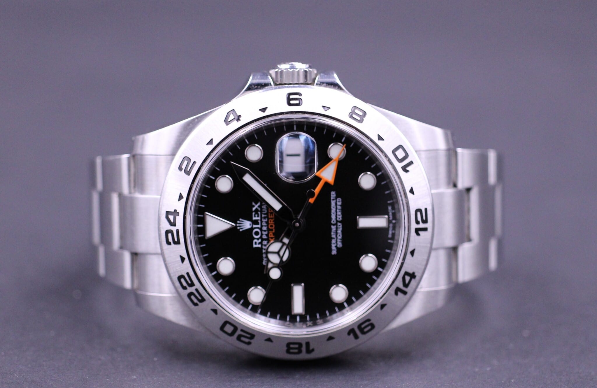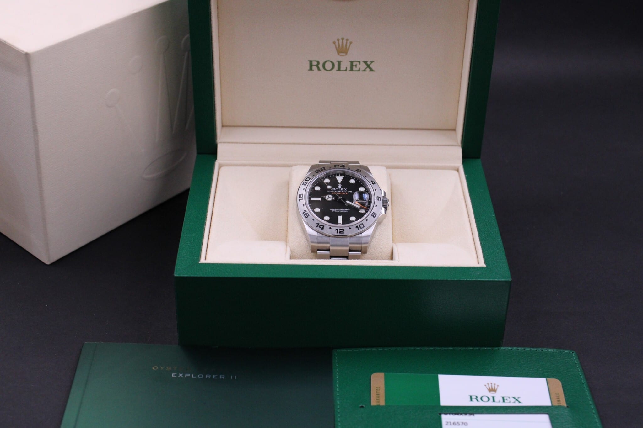 Rolex Explorer II ref. 216570, 2015 solgt fra dansk forhandler og dermed omfattet af Rolex World Wide Garanti til 2020.