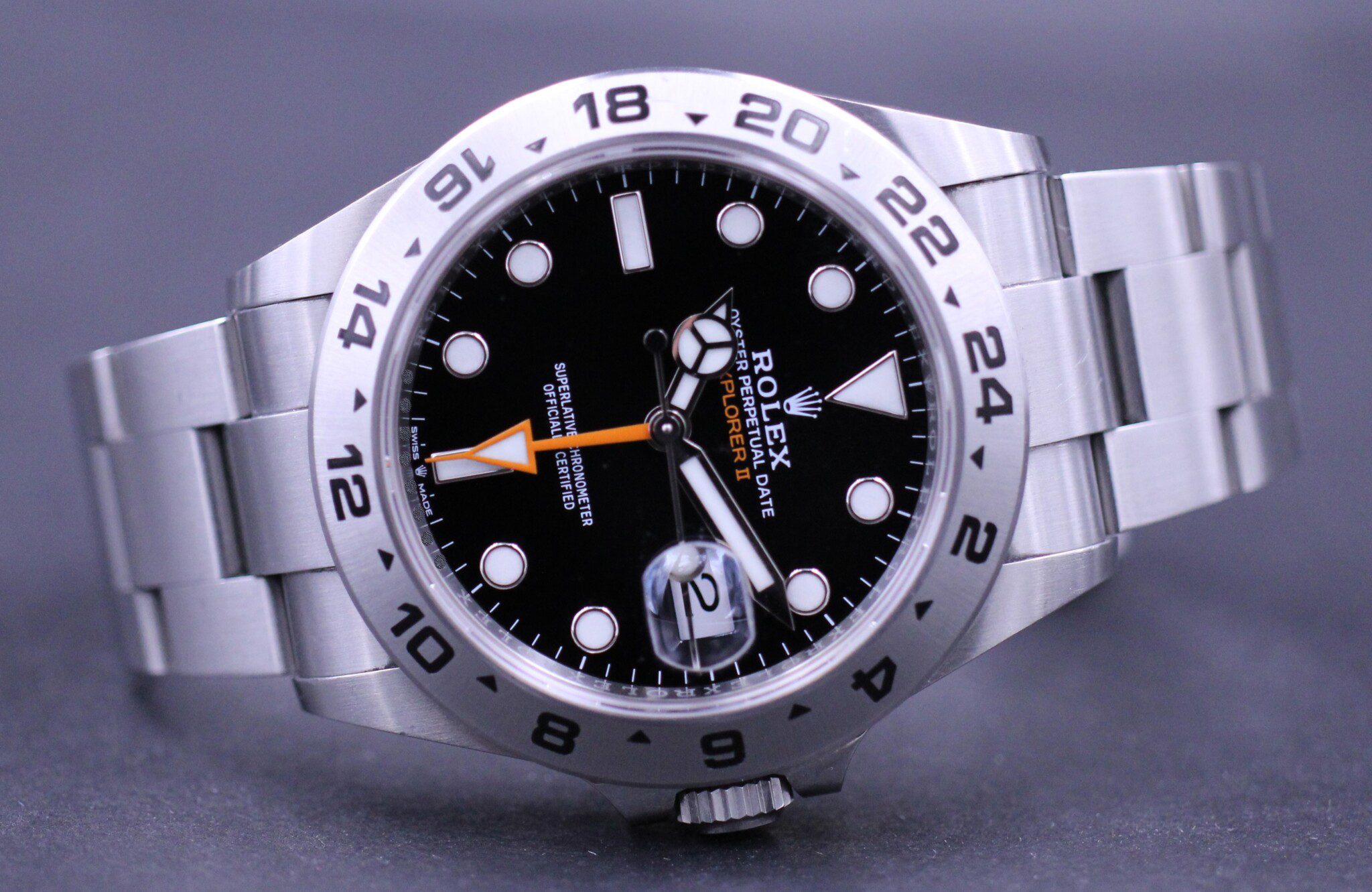 Mærke: Rolex Model: Explorer II Ref. nr.: 226570 Årgang: 2022 Tilbehør: Boks, papirer & certifikat Funktioner: Dato & GMT Størrelse: 42mm Stand: 95%