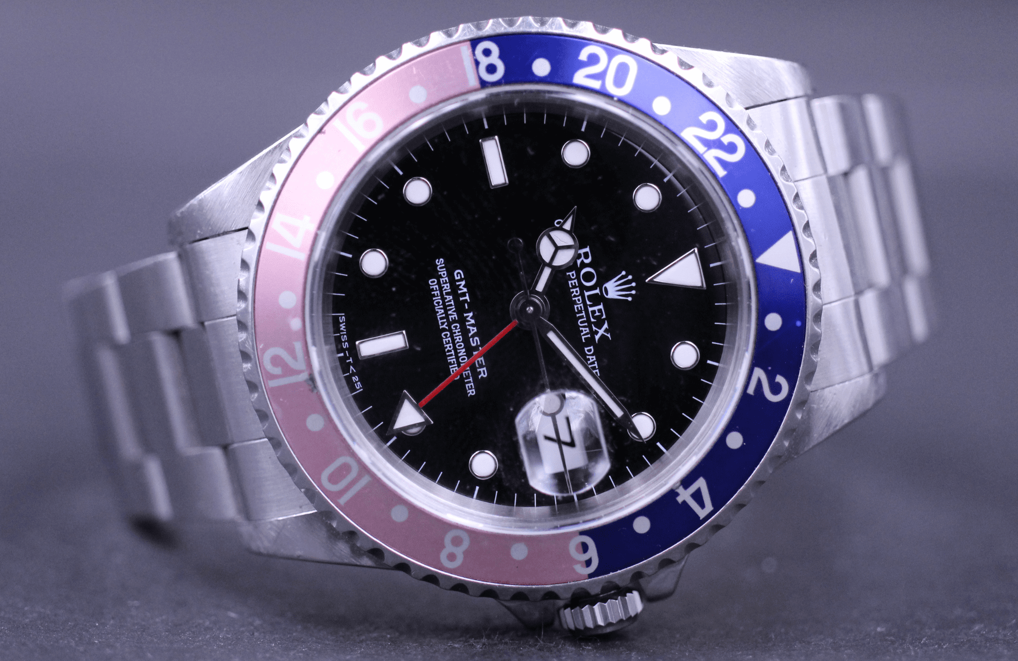 Mærke: Rolex Model: GMT-Master II Ref. nr.: 16700 Årgang: 1998 Tilbehør: Boks, papirer & certifikat Funktioner: Dato & GMT Størrelse: 40mm Stand: 85%