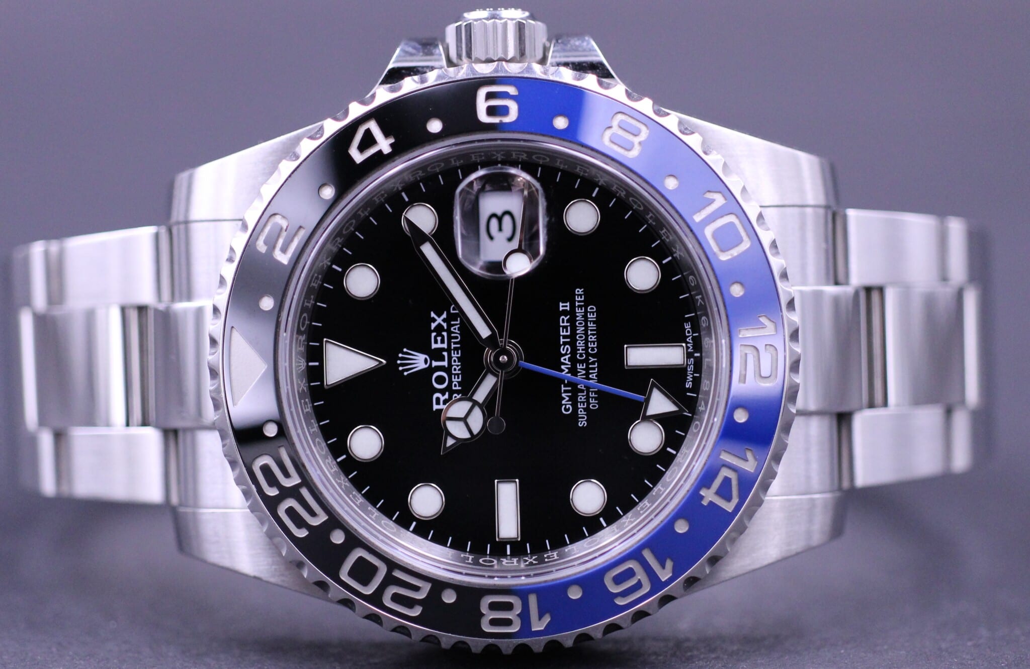 Rolex GMT-Master II, ref. 116710BLNR “Batman” Uret her er fra 2016 og omfattet af Rolex World Wide Garanti til 2021. Meget flot stand og klar til brug.