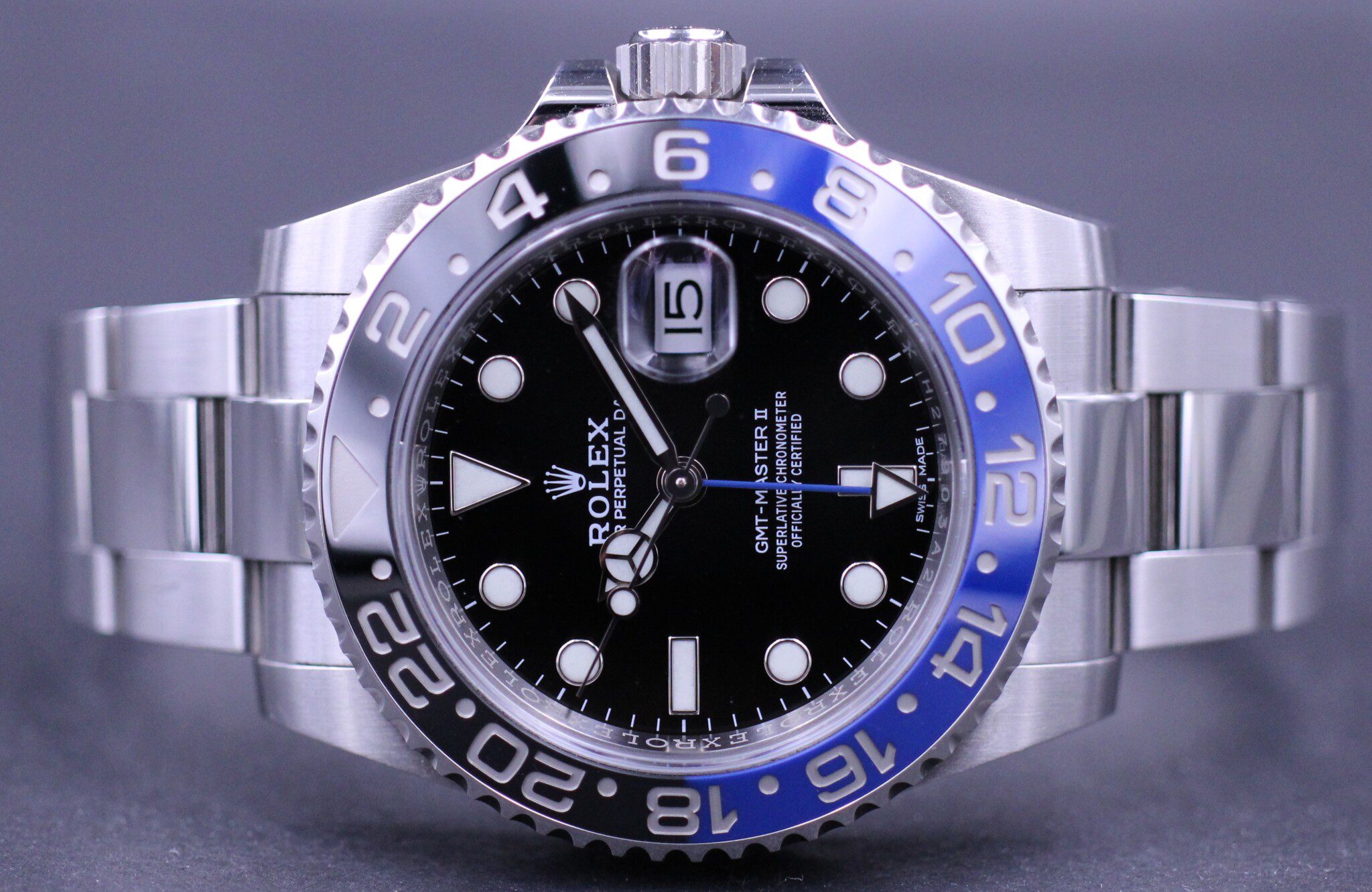 Mærke: Rolex Model: GMT-Master II Ref. nr.: 116710BLNR Årgang: 2018 Tilbehør: Boks, papirer & certifikat Funktioner: Dato & GMT Størrelse: 40mm Stand: 90%