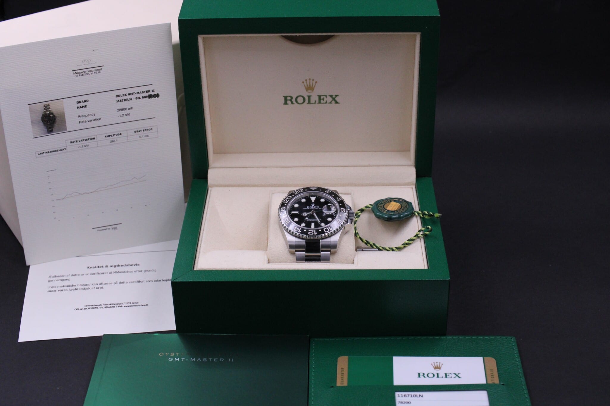 Rolex GMT-Master II, ref. 116710LN solgt i Oktober 2016. Uret er i flot stand og klar til brug
