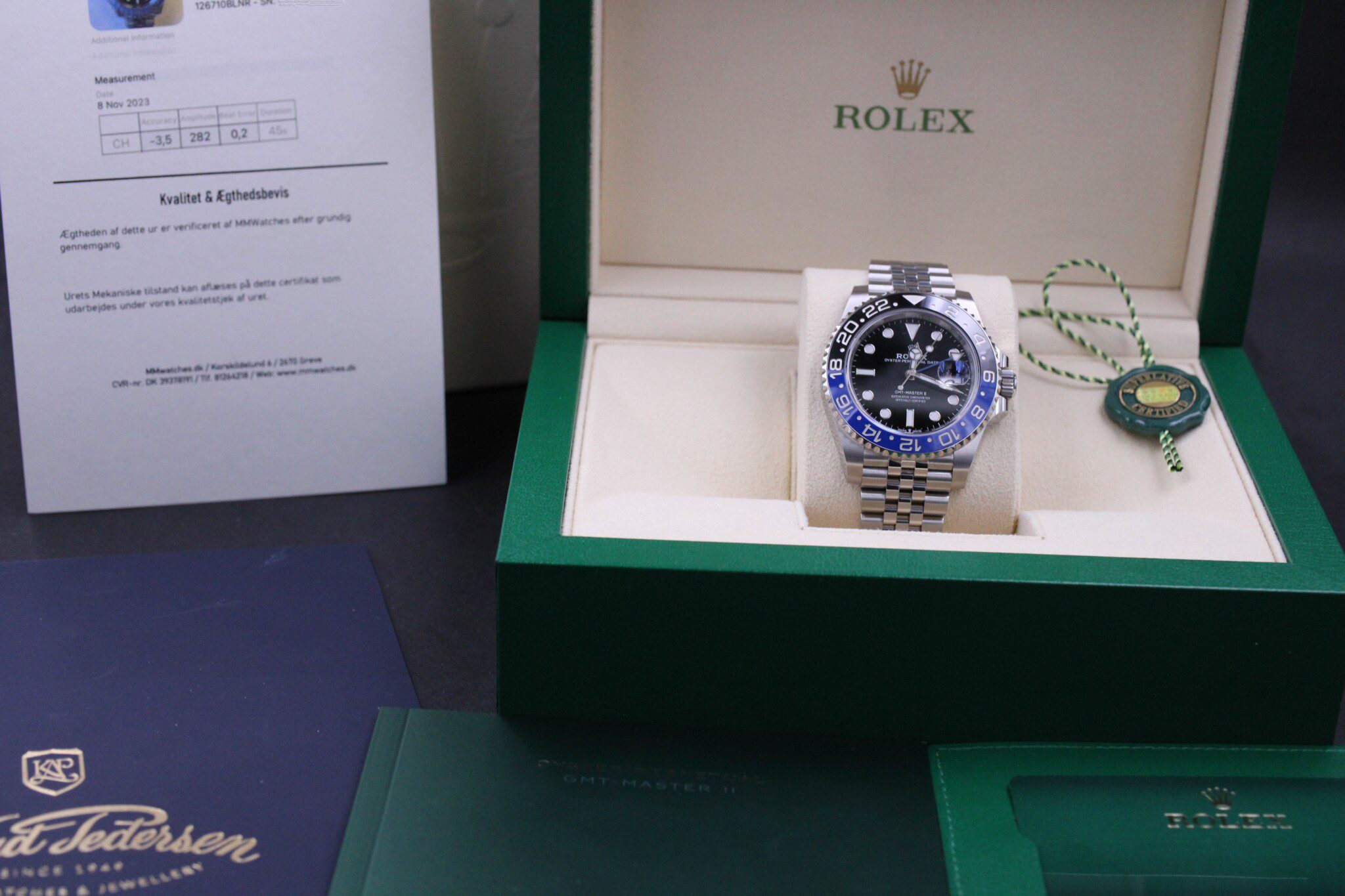 Rolex GMT-Master ref. 126710BLNR “Batgirl”, her fra September 2022. Uret er omfattet af Rolex World Wide Garanti til udgangen af 2027. Uret er i ny stand og brugsspor