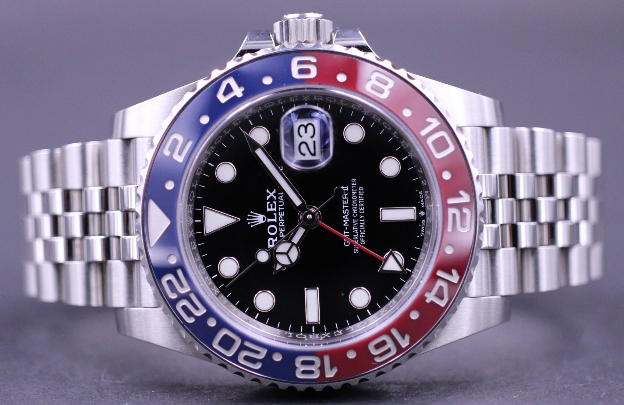 Rolex GMT-Master ref. 126710BLRO, solgt i november 2018 hos Rolex AD. Uret er omfattet af Rolex World Wide garanti til 2024.