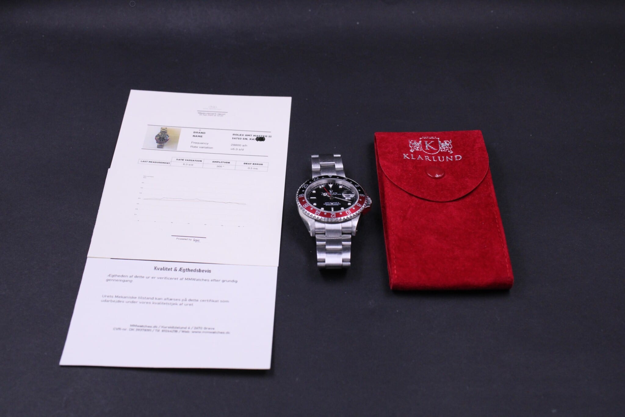 Med til dette ur medfølger MMwatches ”Kvalitet og ægthedsbevis”. Gennem vores grundige gennemgang af uret, fastslår vi at uret er 100% originalt. Urets mekaniske tilstand er testet og lever op til vores kvalitetskrav. Målingerne kan ses i det medfølgende bevis.