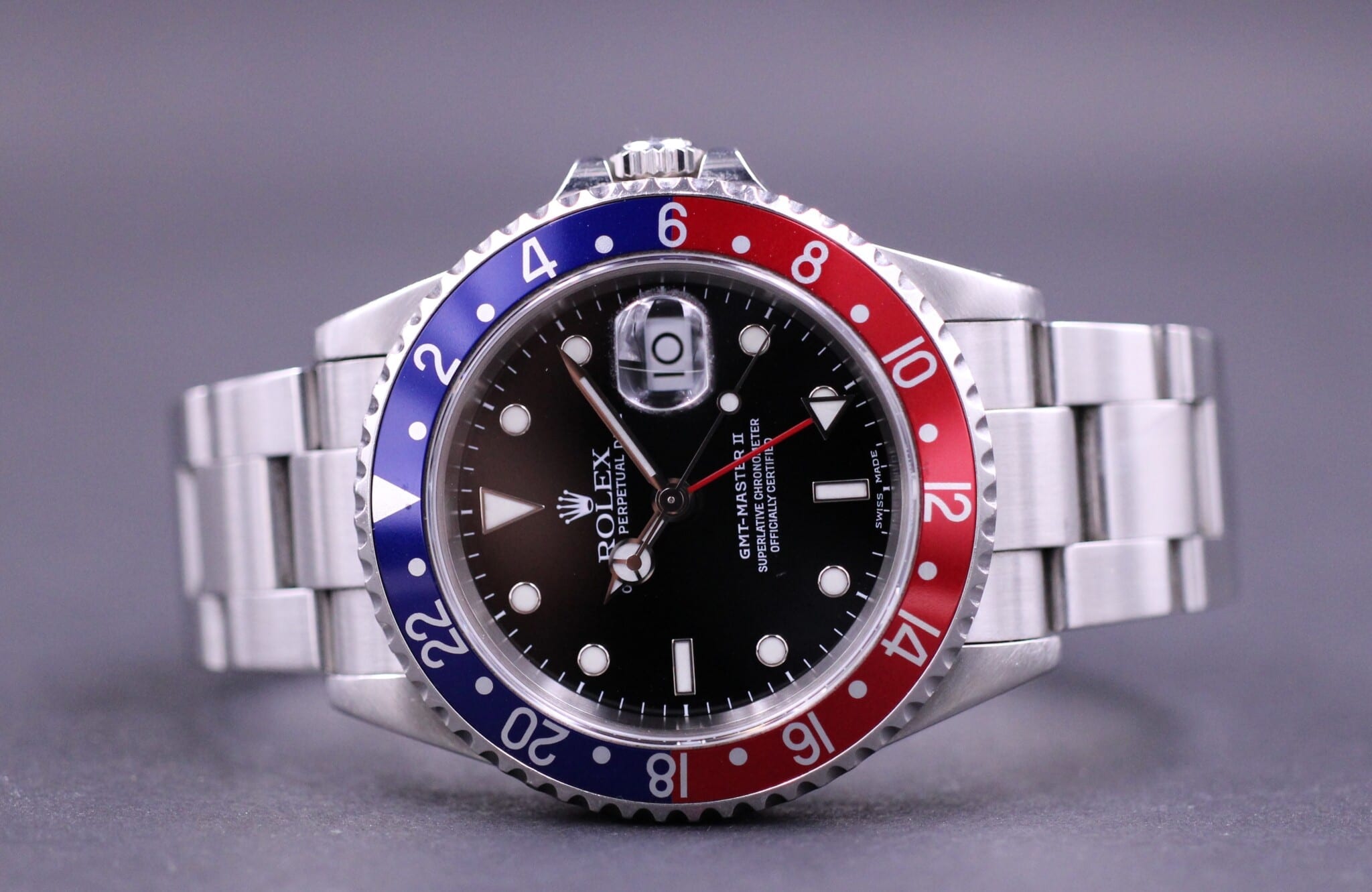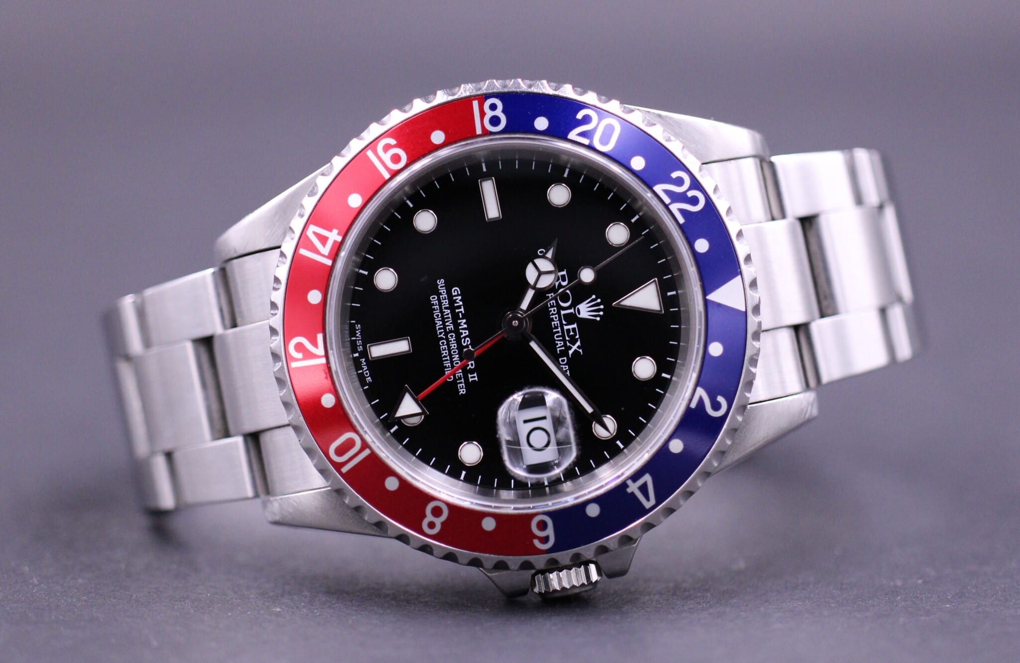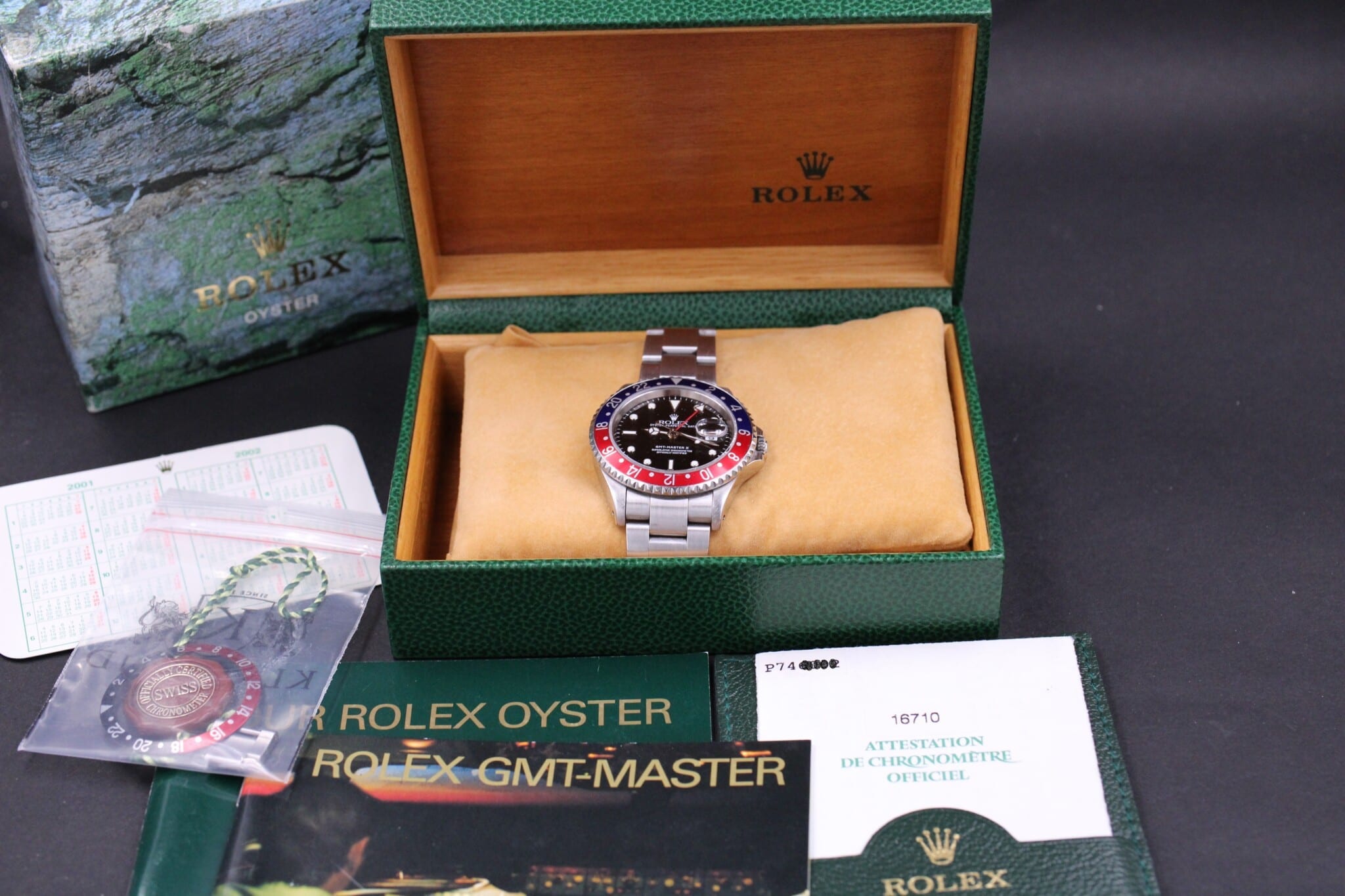 Rolex GMT-Master II, ref. 16710 fra 2001 (P74xxxx serienr.) Fra den danske forhandler Knud Pedersen i Århus.
