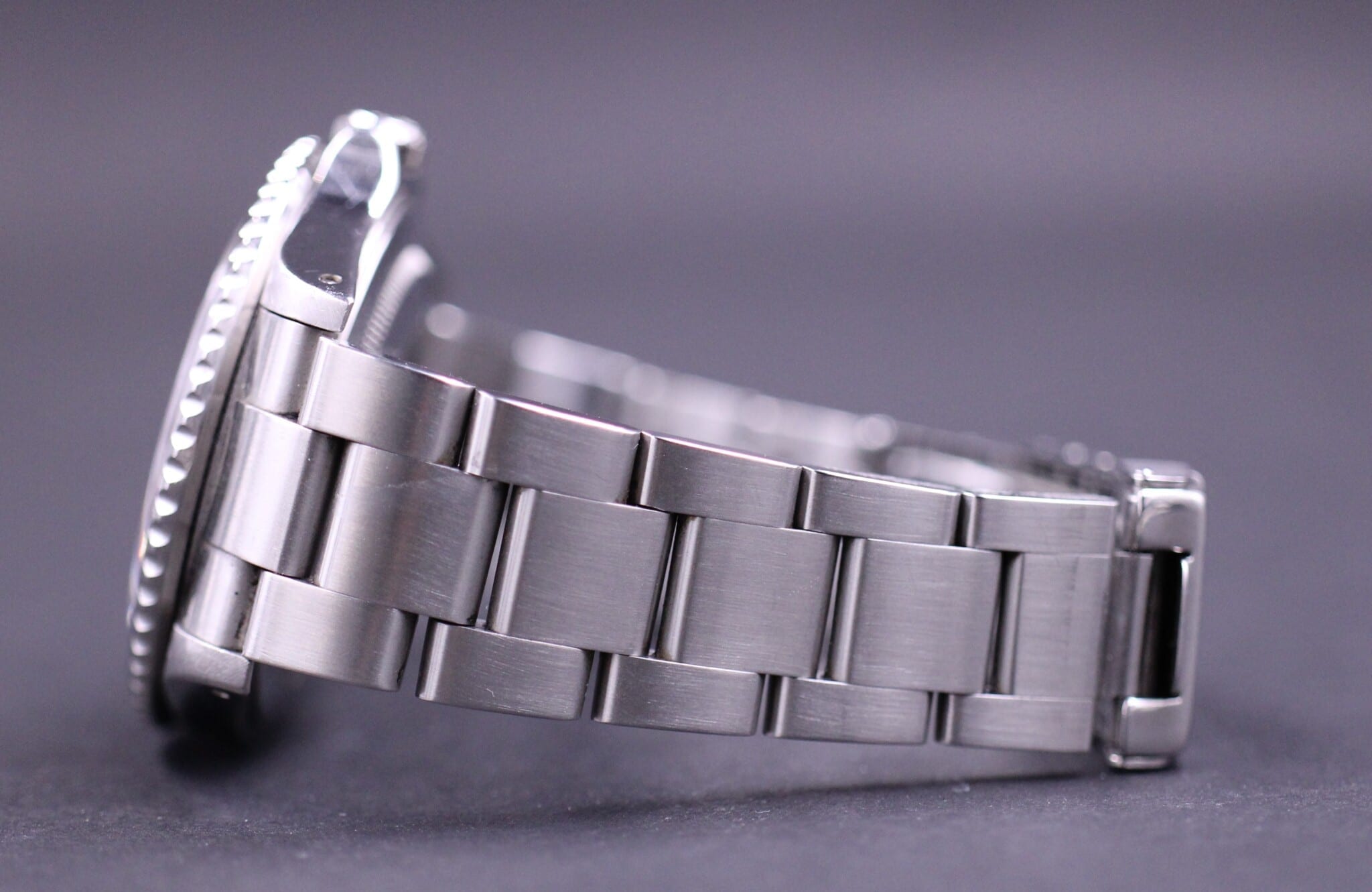 Klassik Rolex GMT med solid end links og kasse med stift huller. Rigtig fin stand med få brugsspor. Uret sidder på en fin oyster lænke i god stand og er monteret med “pepsi” insert. (Coke insert medfølger).