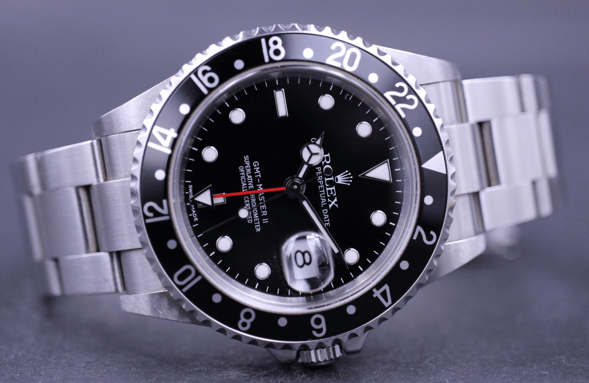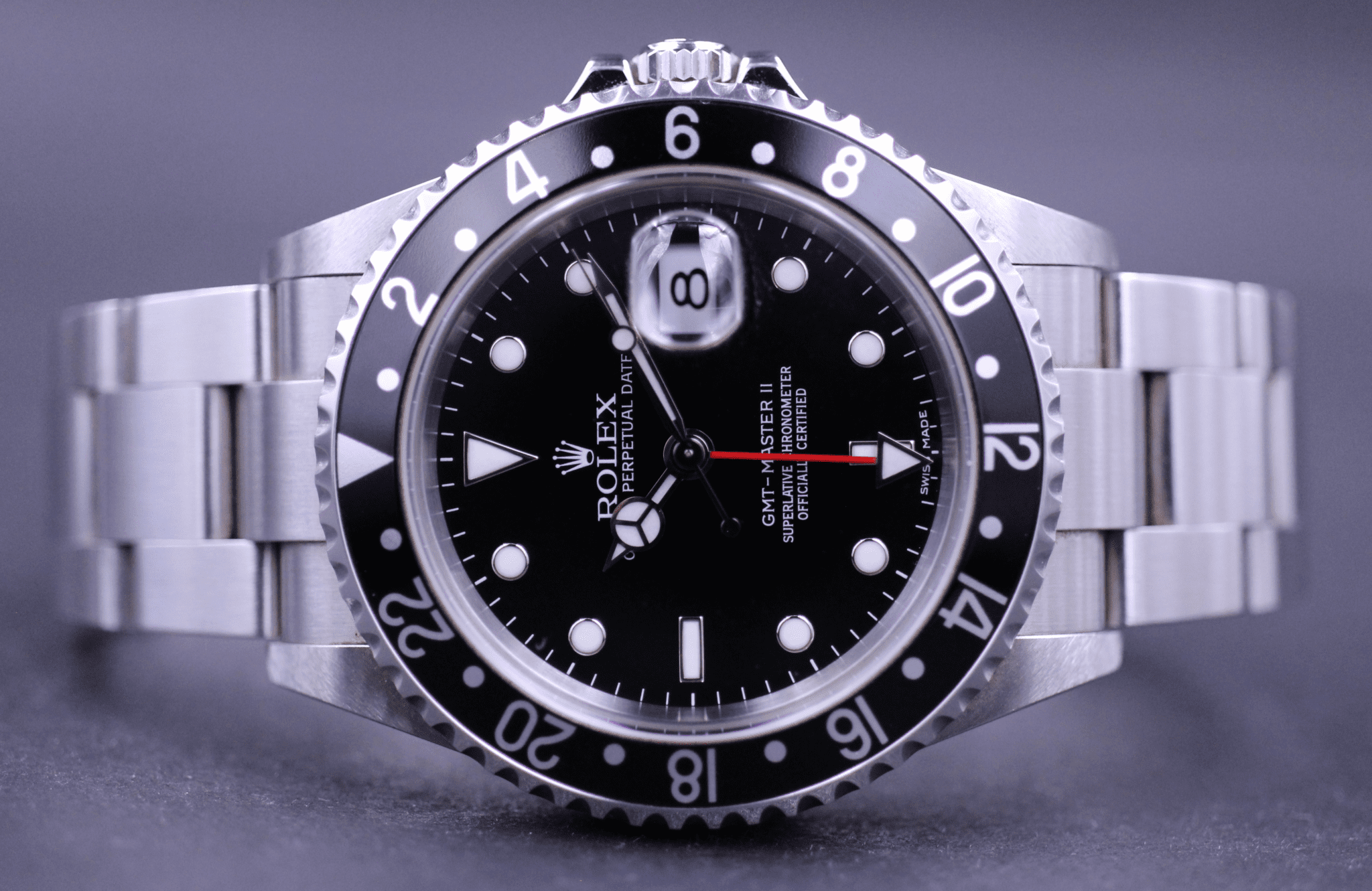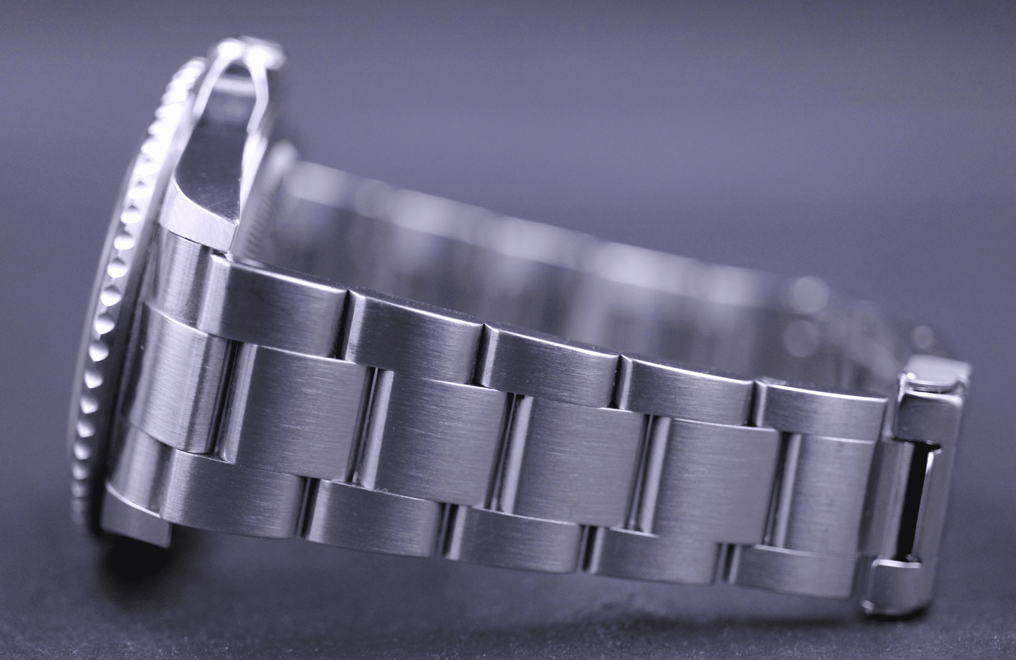 Uret sidder på en flot Oyster lænke og er monteret med sort indlæg. Dertil er det vores vurdering at uret er upoleret.