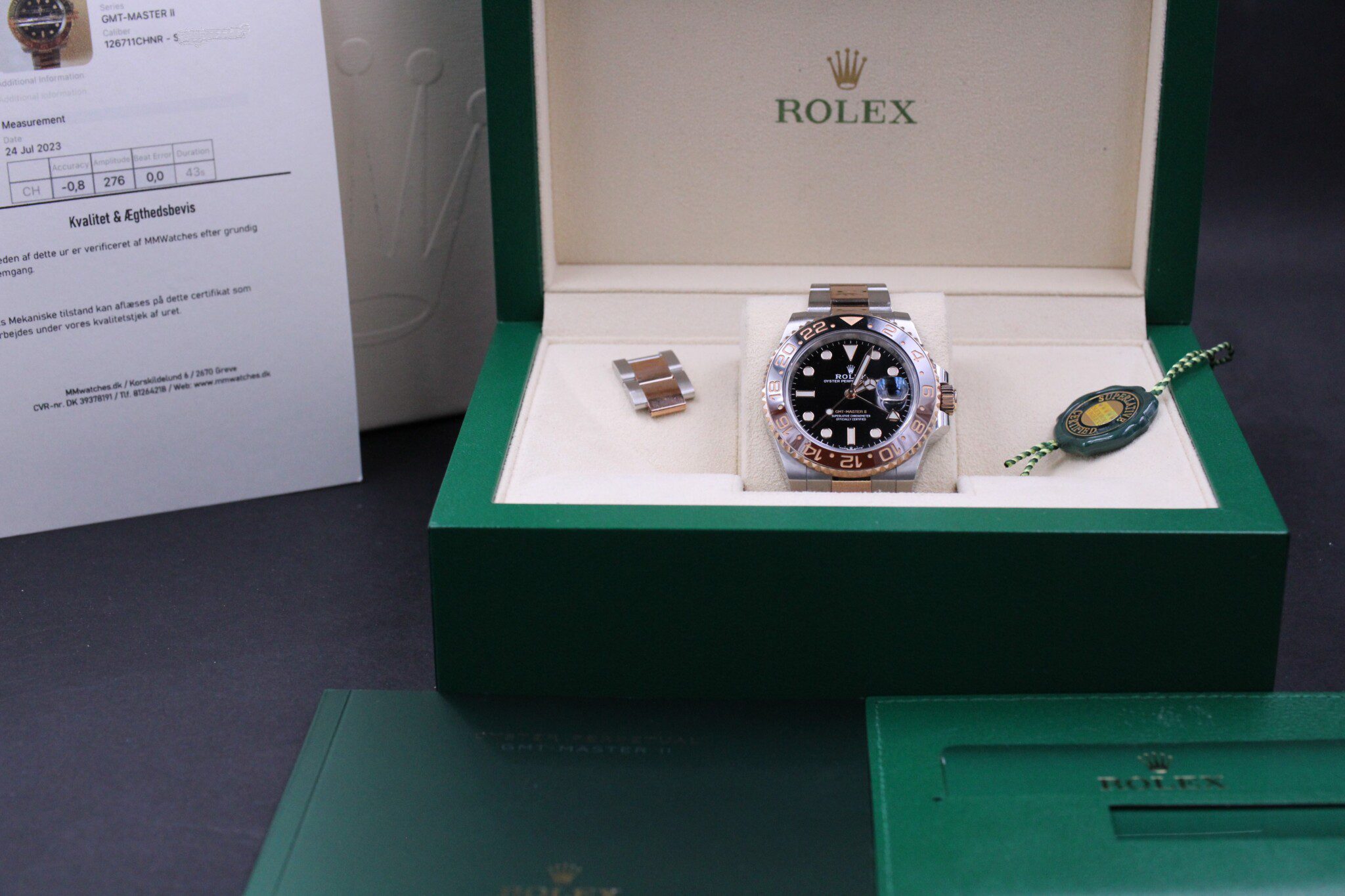 Rolex GMT-Master II Rootbeer, ref. 126711CHNR fra December 2020. Omfattet af Rolex World Wide garanti til 2025. Uret er i meget flot stand.
