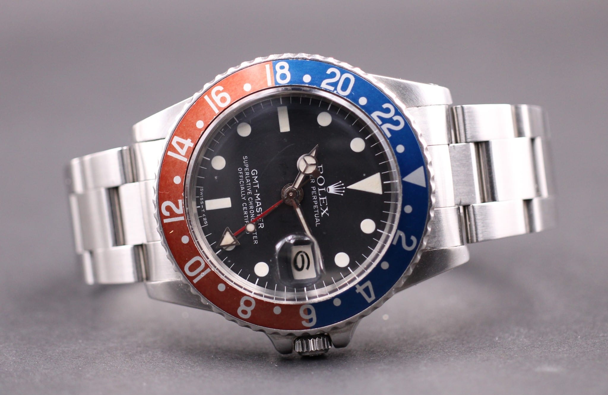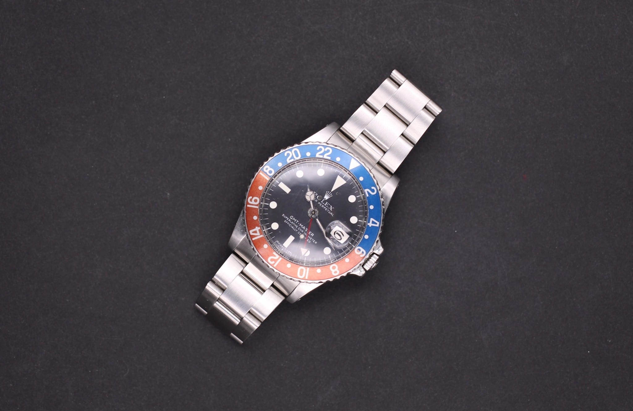 Rolex GMT-Master, ref. 1675 fra 1977 (549xxxxx serienummer).
