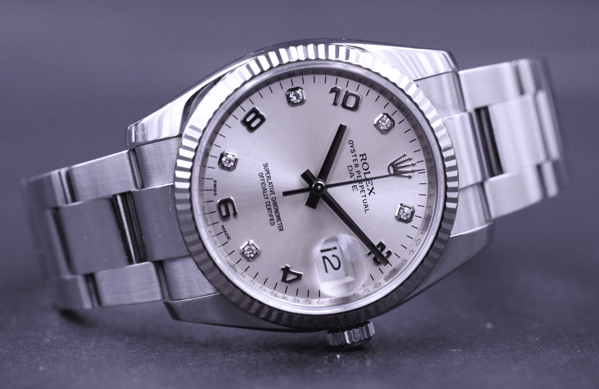 Rolex Oyster Perpetual Date, ref. 115234 fra 2013. Servicepapirer medfølger.