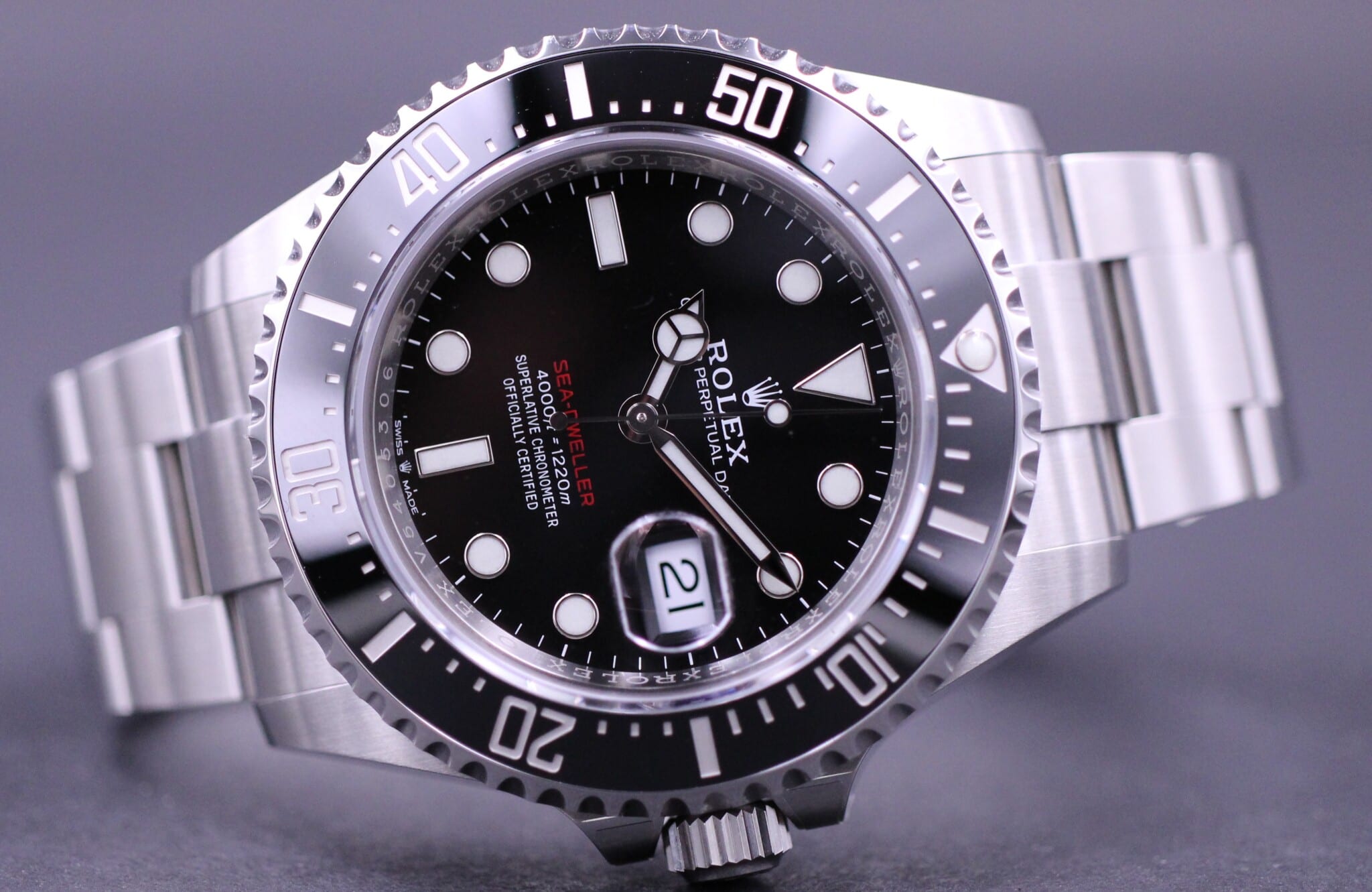 Den super populære Sea-Dweller, der blev introduceret på Basel 2017 i forbindelse med Sea-Dweller modellens 50 års jubilæum. Og er et af de mest eftertragtede sports ure på markedet.