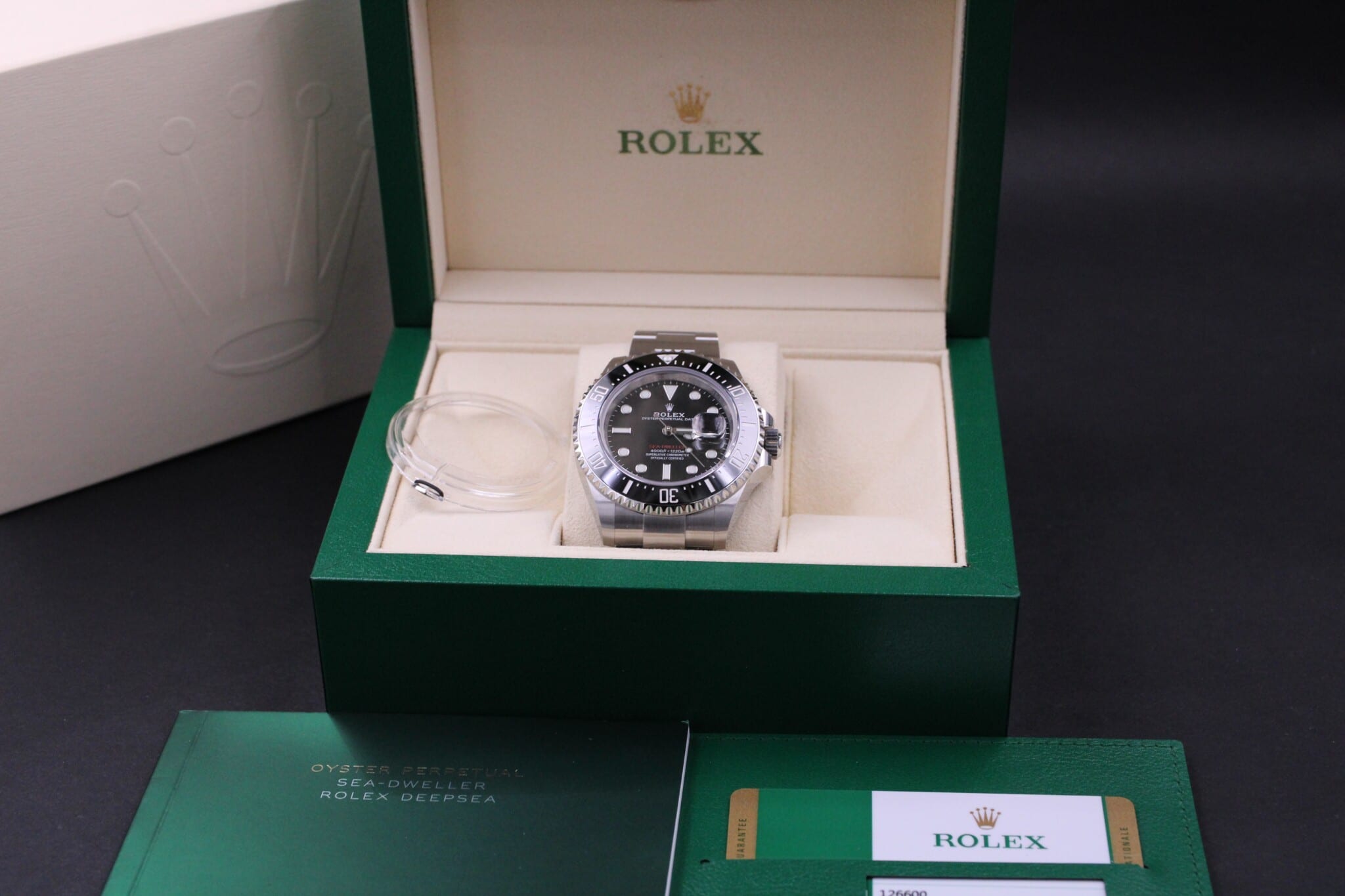 Rolex Sea-Dweller 50th Anniversary, ref. 126600 fra December 2019. Her 100% fabriksnyt delvist i folie.