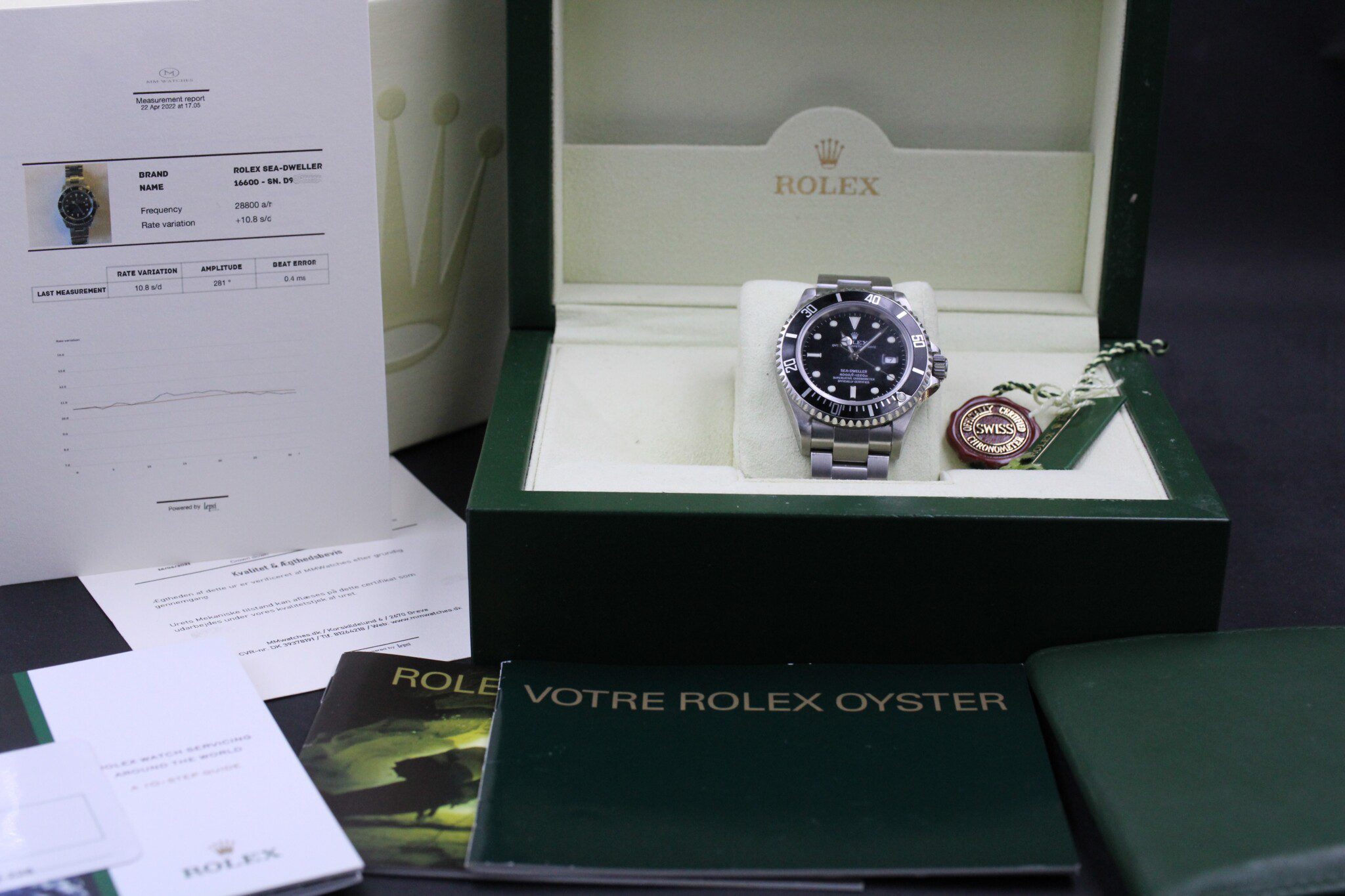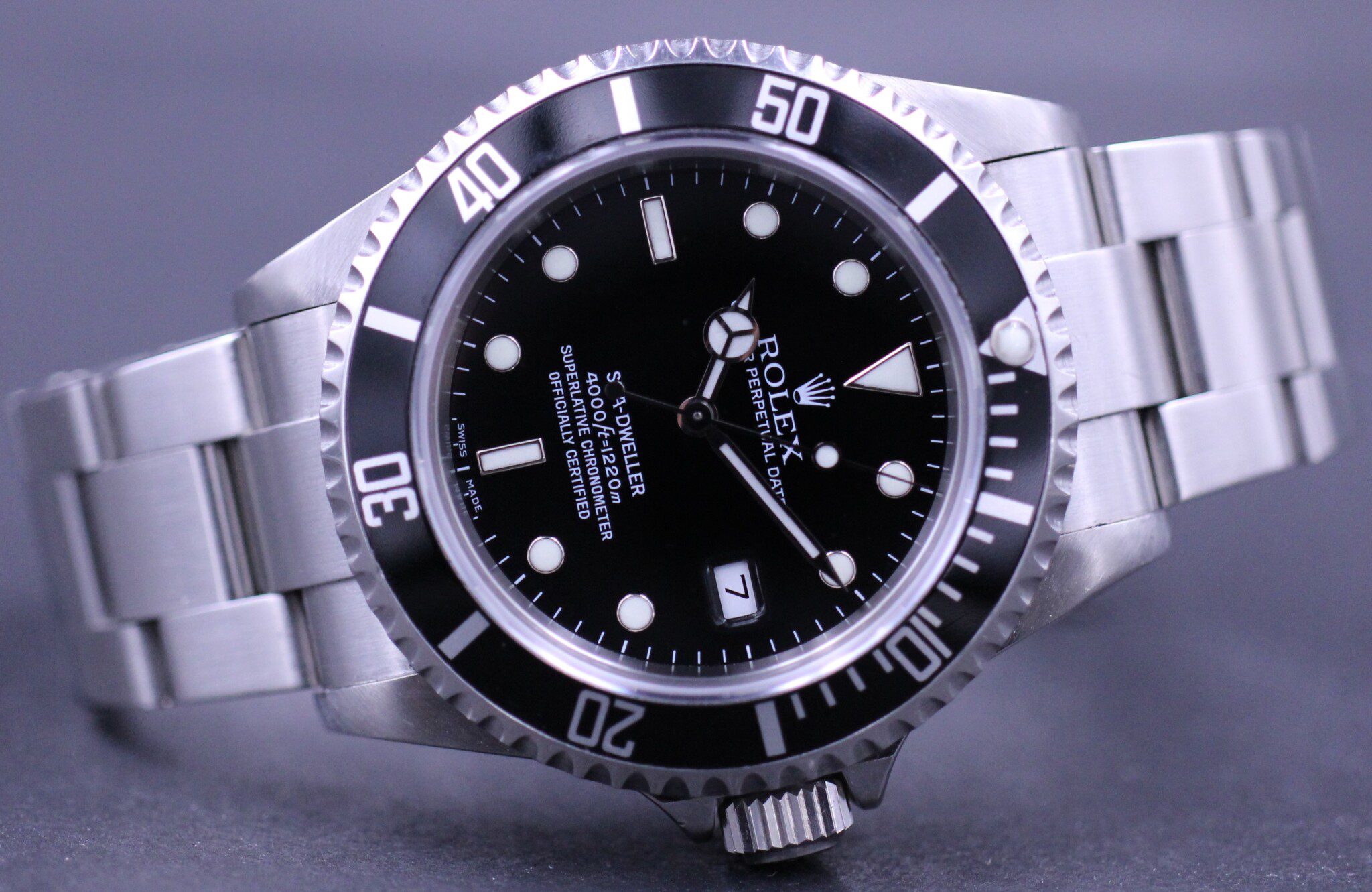 Det klassiske Toolwatch Rolex Sea-Dweller der udgik i 2008 og er siden blevet et af de mest eftertragtet ure fra Rolex. Dette er versionen uden stifthuller i kassen.