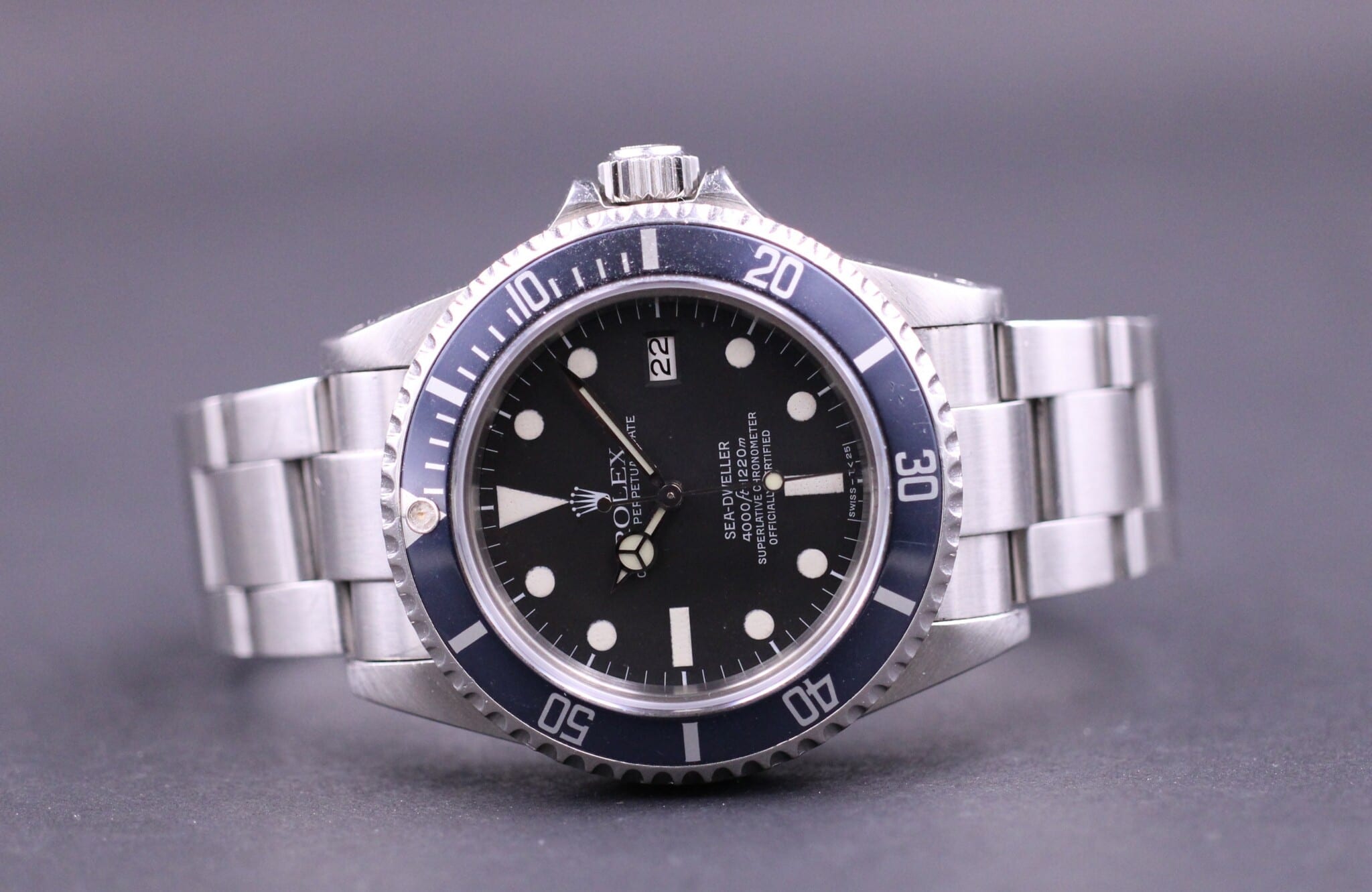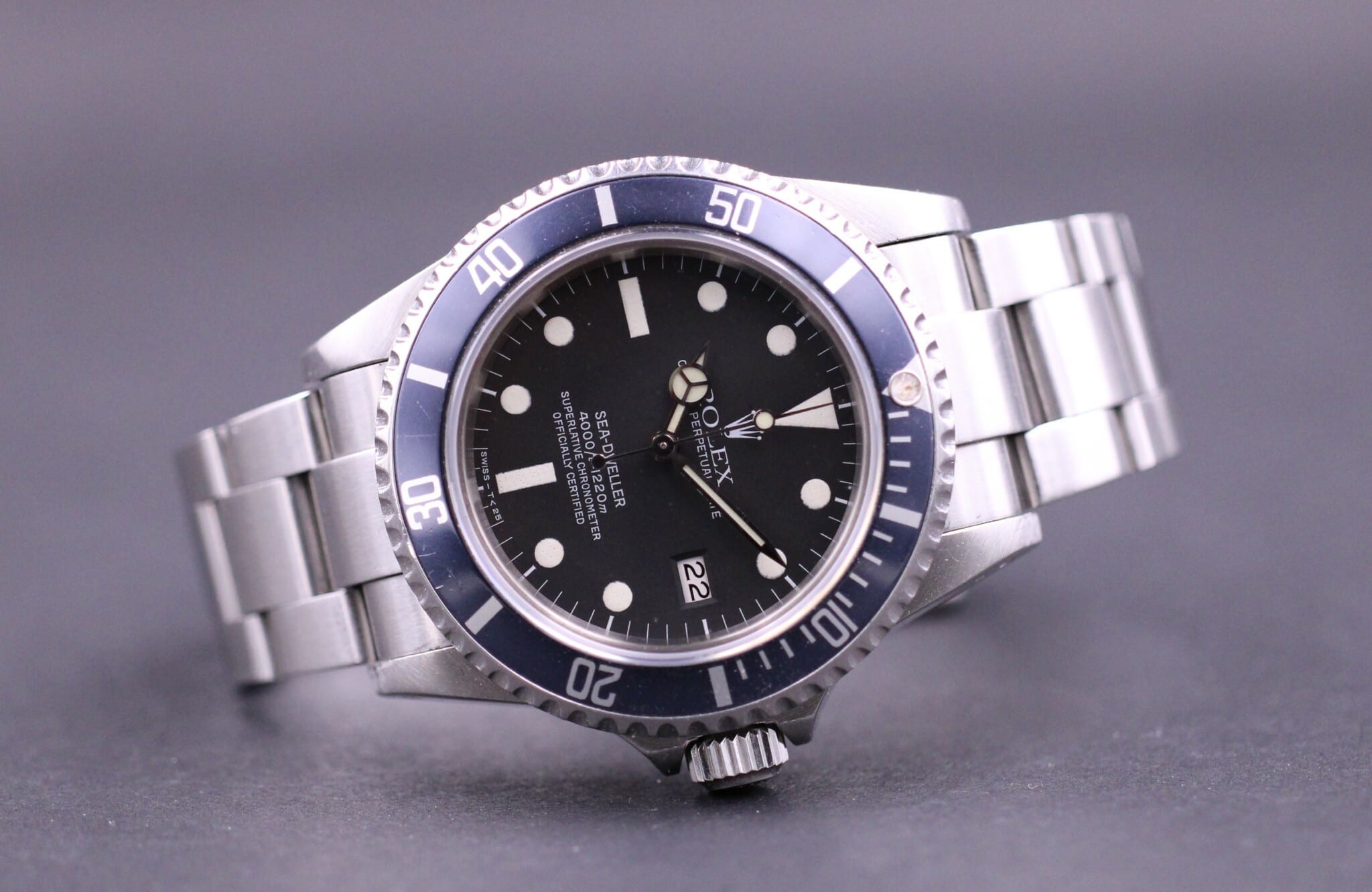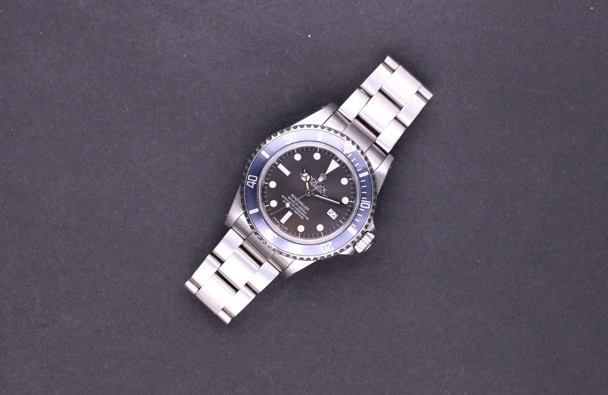 Mærke: Rolex Model: Sea-Dweller Ref. nr.: 16660 Årgang: 1983 Tilbehør: Bokse, papirer, certifikat, booklets, hangtags, Rolex servicepapirer, Buehlmann tabel, anker, værktøj etc. Funktioner: Dato Størrelse: 40mm Stand: 80%
