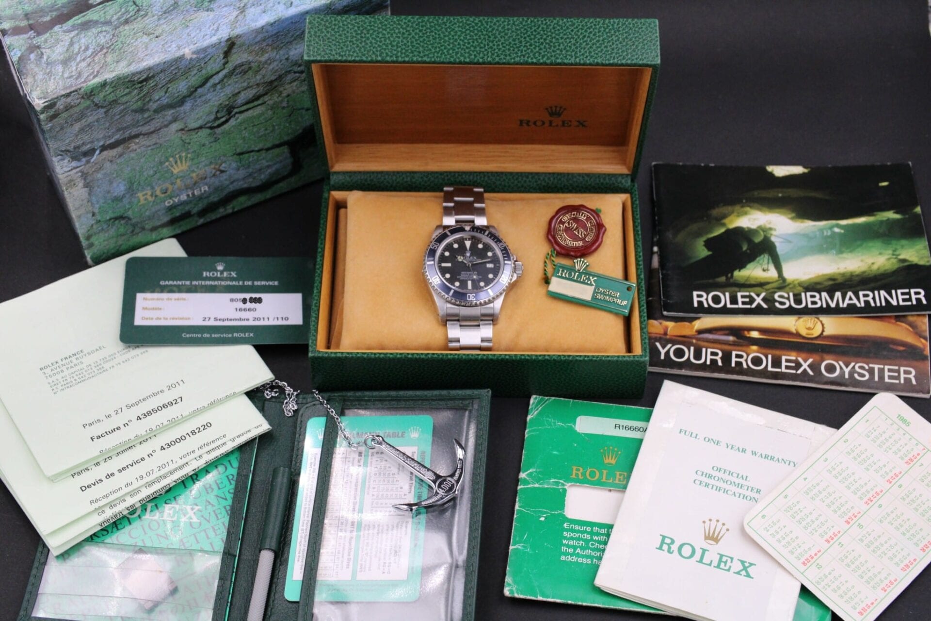 Uret kommer som et flot med bokse, papirer, certifikat, booklets, hangtags, Rolex servicepapirer, Buehlmann tabel, anker, værktøj etc etc.