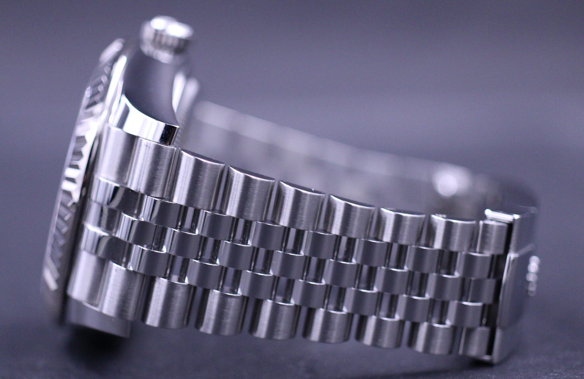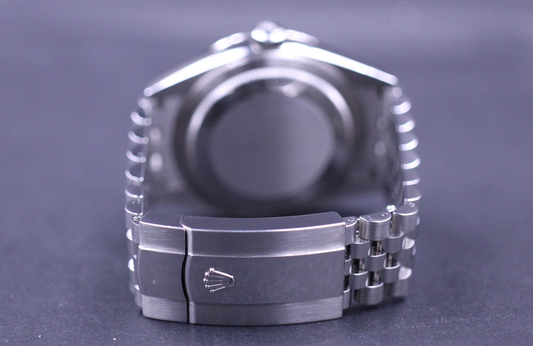 Super flot Sky-Dweller i stål, her med den populære blå skive – Her monteret på en jubilee lænke.