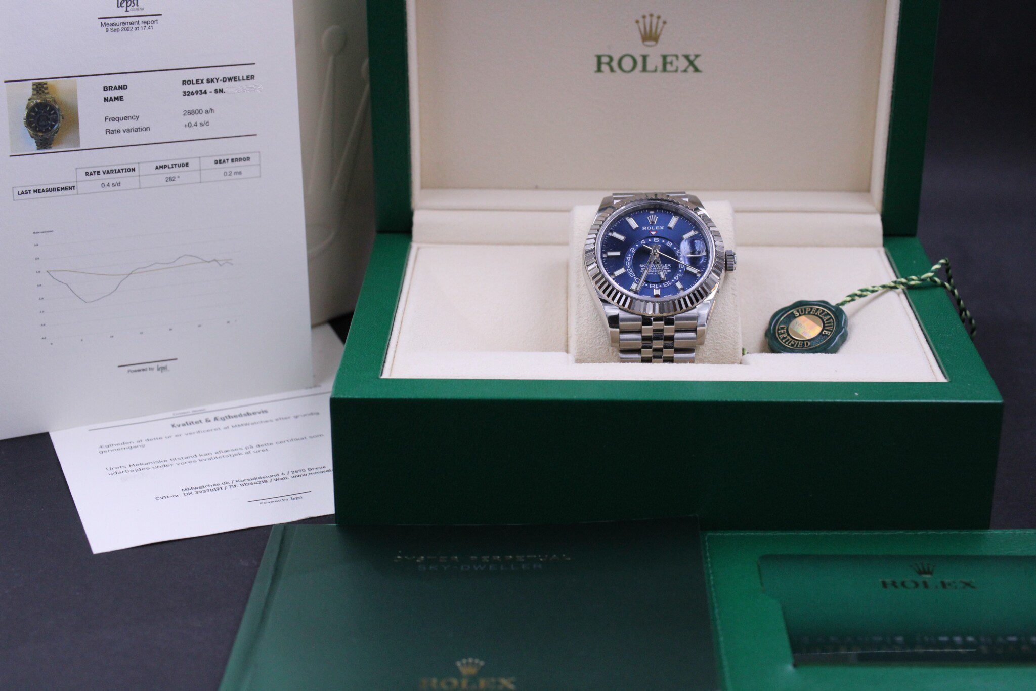 Fantastisk Rolex Sky-Dweller ref. 326934, fra 2022. Uret er omfattet Rolex World Wide Garanti til 2027. Uret er i super flot stand!
