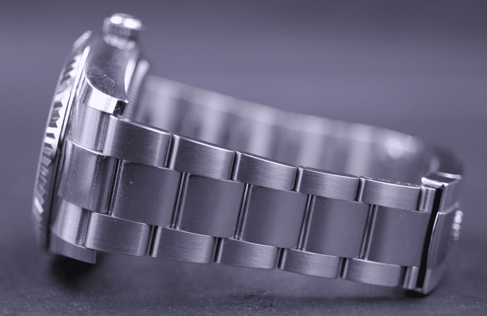 Super flot Sky-Dweller i stål, her med den populære blå skive – Her monteret på en Oyster lænke.