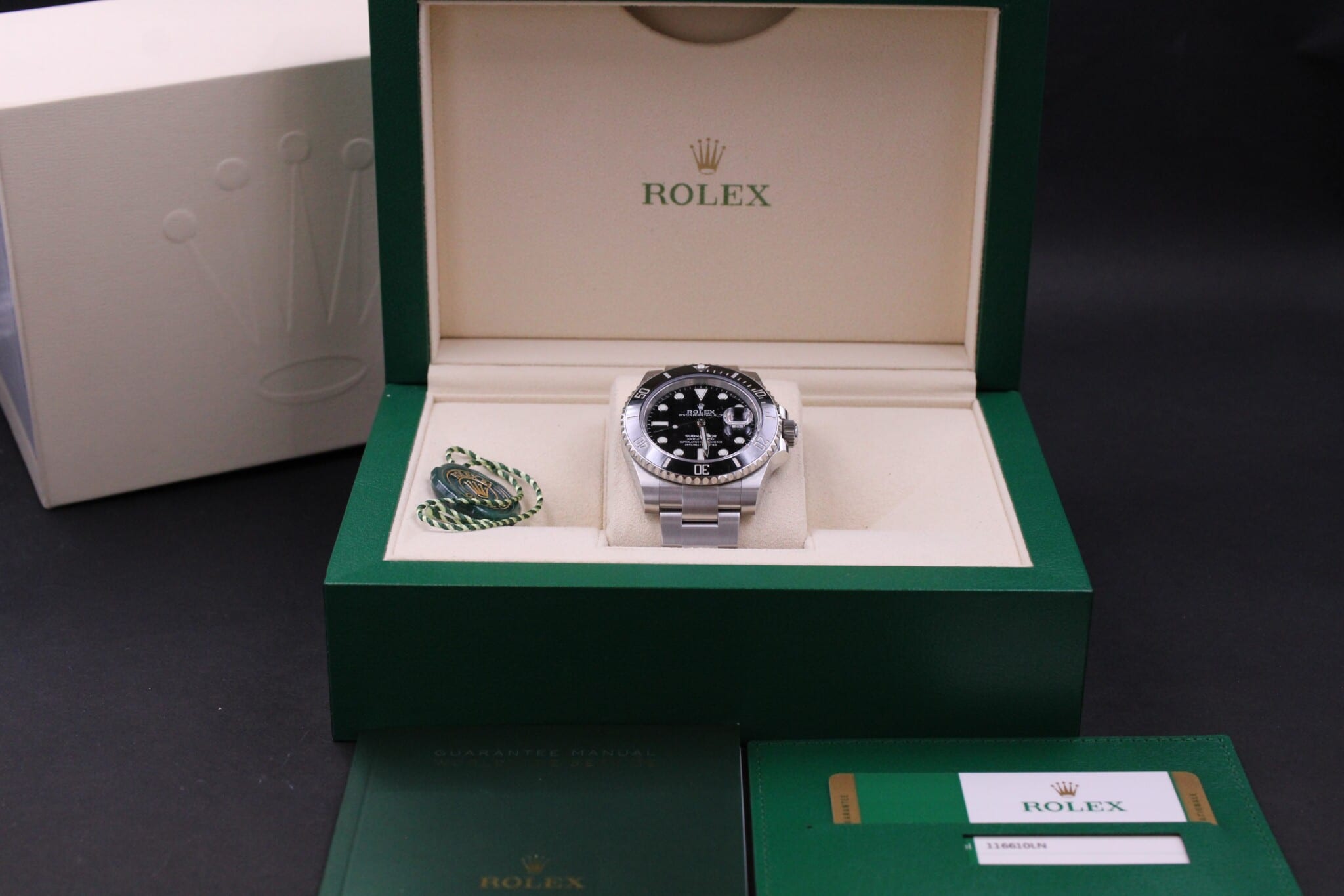 Rolex Submariner, ref. 116610LN fra 2019, og dermed omfattet af Rolex Worldwide garanti til 2024. Uret står stort set som nyt.