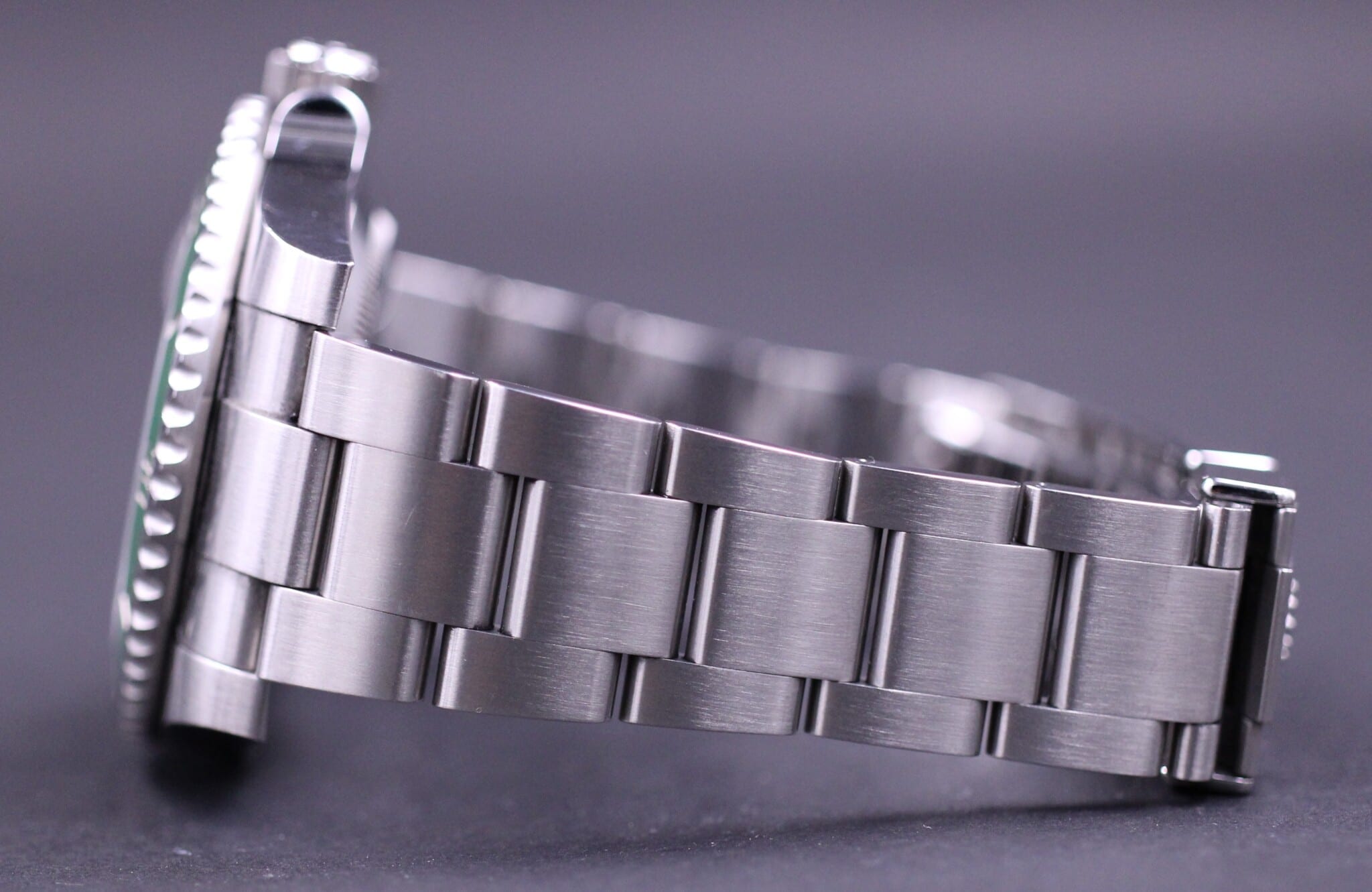 Uret er med den Keramiske krans og den lækre grønne skive, samt den nyeste model af Submarineren. Uret er udstyret med et cal. 3135 værk. Kasse og lænke udført i 904L stål. Låsen er udstyret med Glidelock extension.