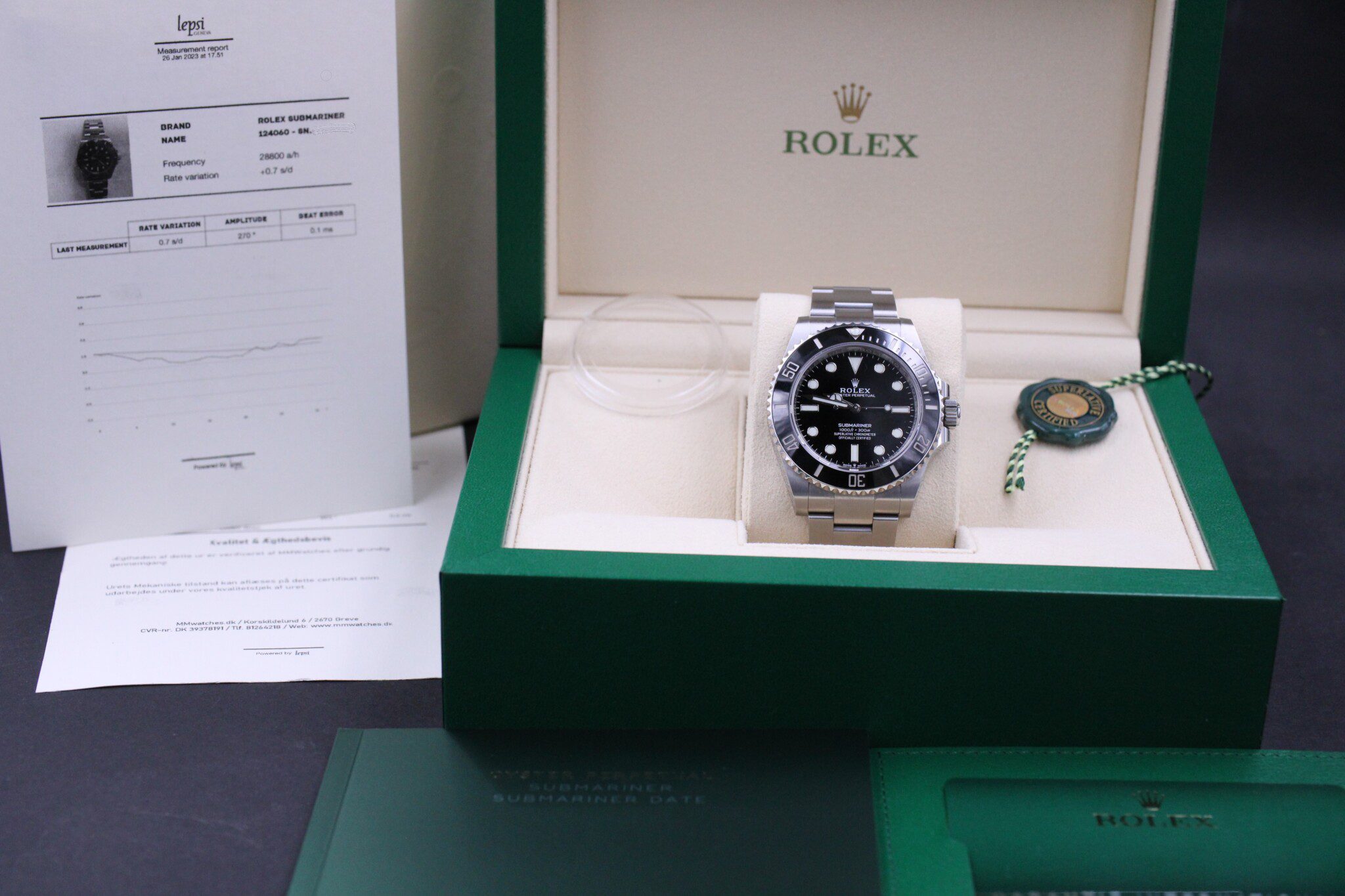 Rolex Submariner, ref 124060 fra December 2021 og omfattet af Rolex World Wide Garanti til udgangen af 2026. Uret er i meget flot stand.