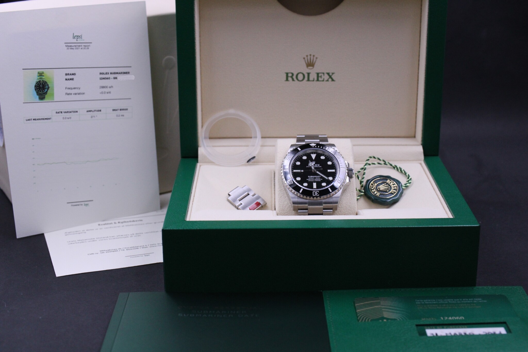 Mærke: Rolex Model: Submariner Ref. nr.: 124060 Årgang: 2021 Tilbehør: Boks, papirer & certifikat Funktioner: Størrelse: 41mm Stand: 99%