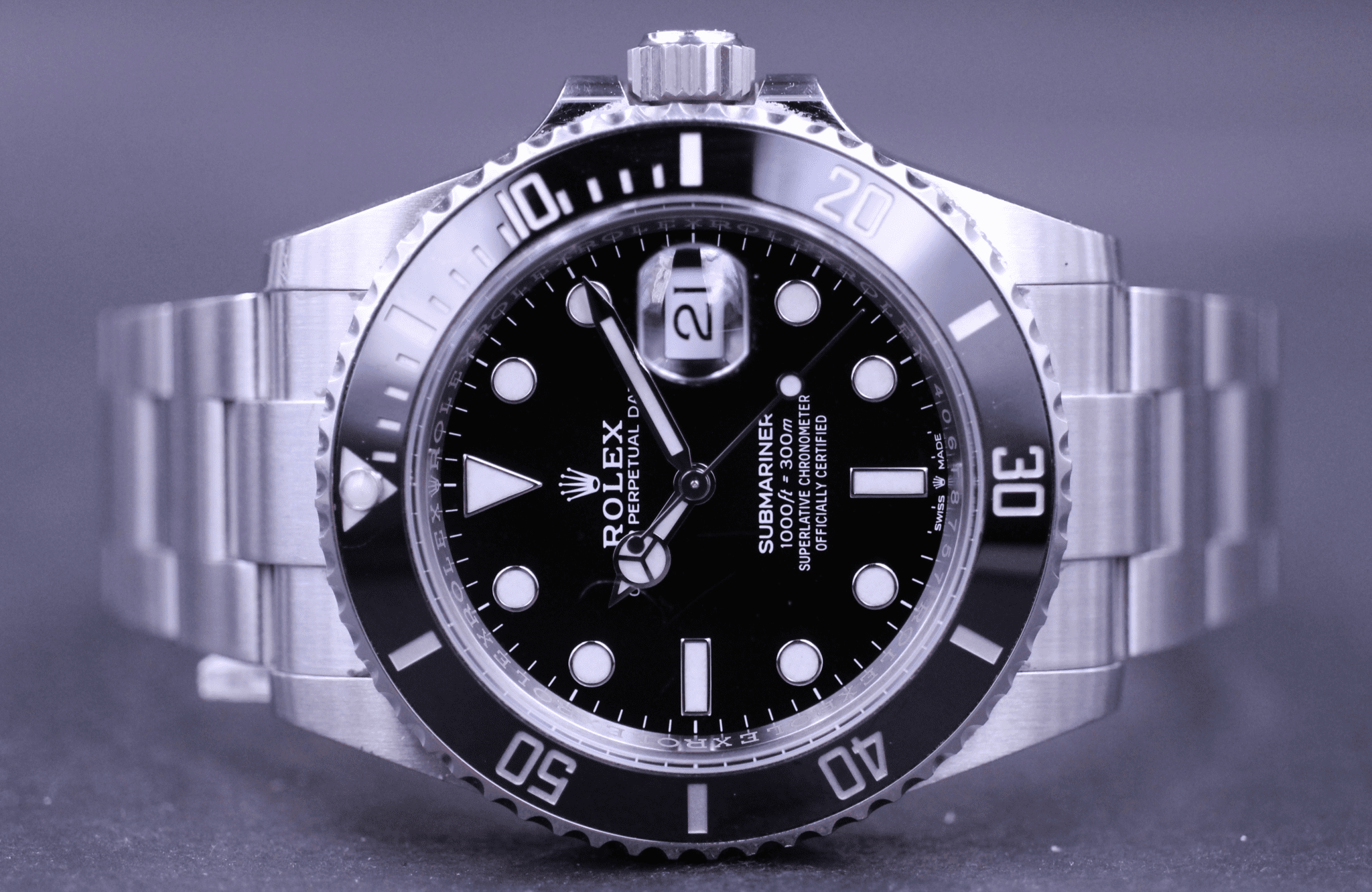Klassikeren over dem alle – Her i den nyeste udgave præsenteret i 2020 med kasse på 41mm, hvidgulds markeringer og visere samt safirglas og sort keramisk lynette.