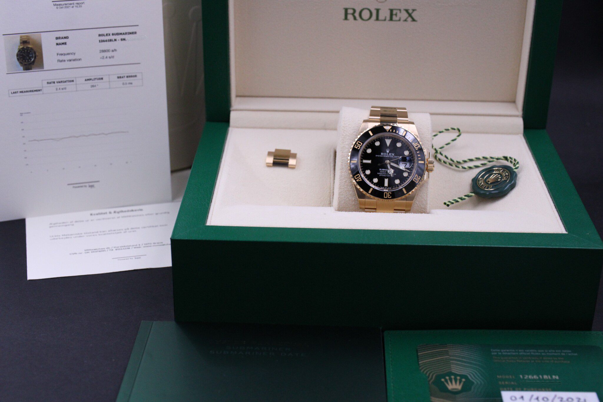 Med til dette ur medfølger MMwatches ”Kvalitet og ægthedsbevis”. Gennem vores grundige gennemgang af uret, fastslår vi at uret er 100% originalt. Urets mekaniske tilstand er testet og lever op til vores kvalitetskrav. Målingerne kan ses i det medfølgende bevis..