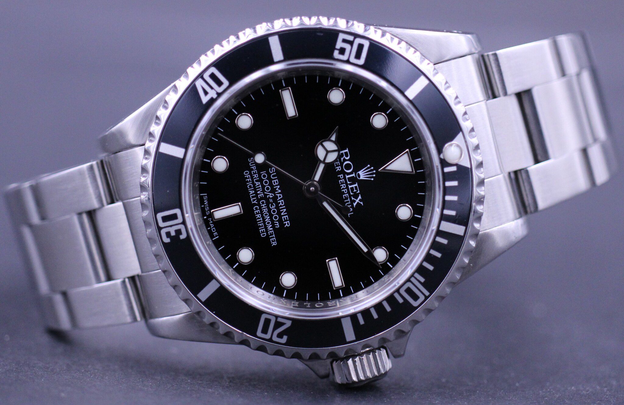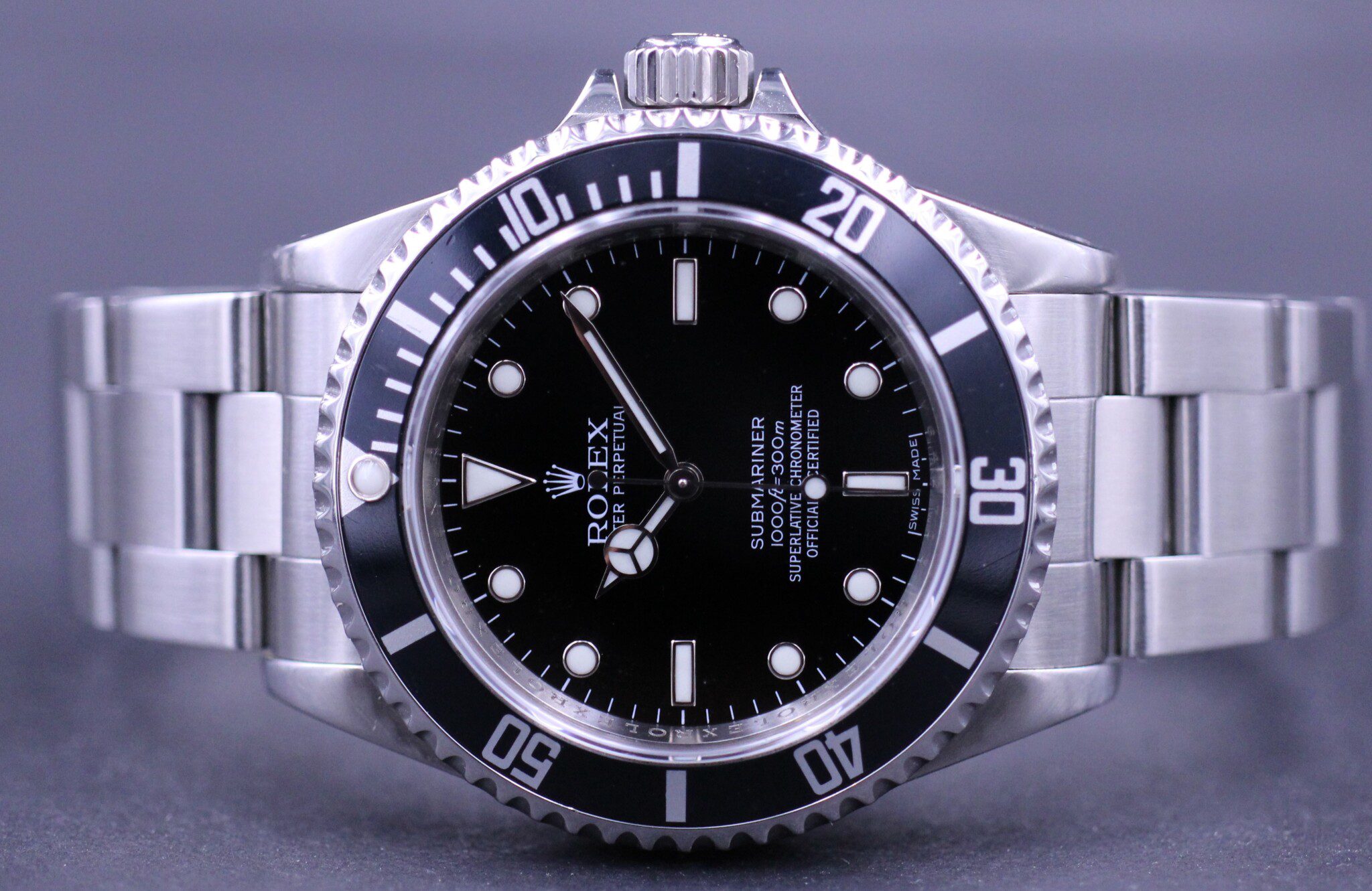 En af de helt store klassikere blandt Rolex dykkerure, 14060 som man kan kalde en opgraderede version af den også klassiske 5513. Et ur uden dato, der fremstår helt enkelt og elegant. Her i den eftertragtede 4-liner udgave, med “ROLEX ROLEX ROLEX” indgraveret i rehaut, som kun blev produceret i fem år.
