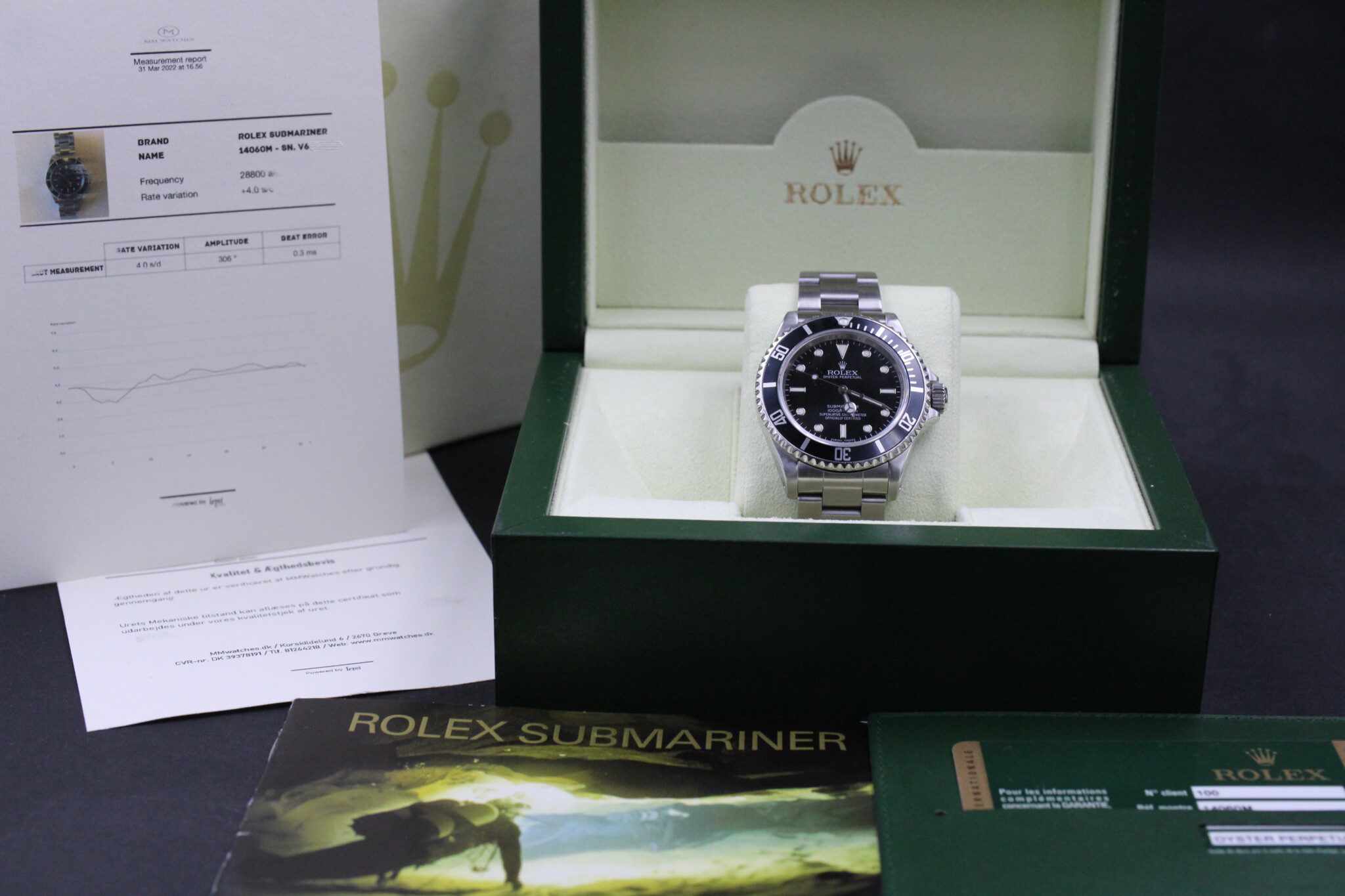 Med til dette ur medfølger MMwatches ”Kvalitet og ægthedsbevis”. Gennem vores grundige gennemgang af uret, fastslår vi at uret er 100% originalt. Urets mekaniske tilstand er testet og lever op til vores kvalitetskrav. Målingerne kan ses i det medfølgende bevis.