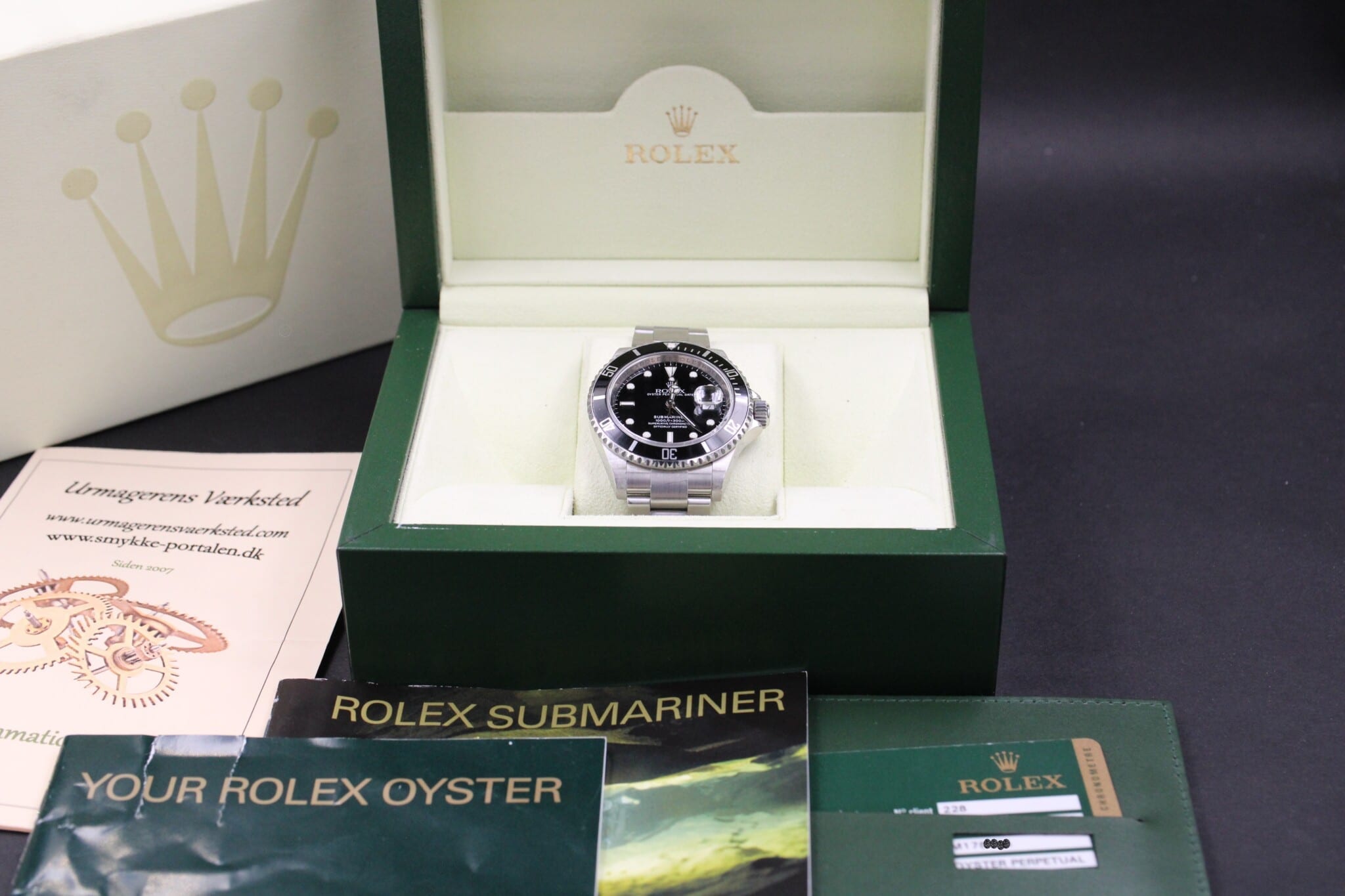 Rolex Submariner, ref. 16610 fra 2007 (M serie). Solgt d. 24 December hos Klarlund. Uret er ny serviceret Juli 2019