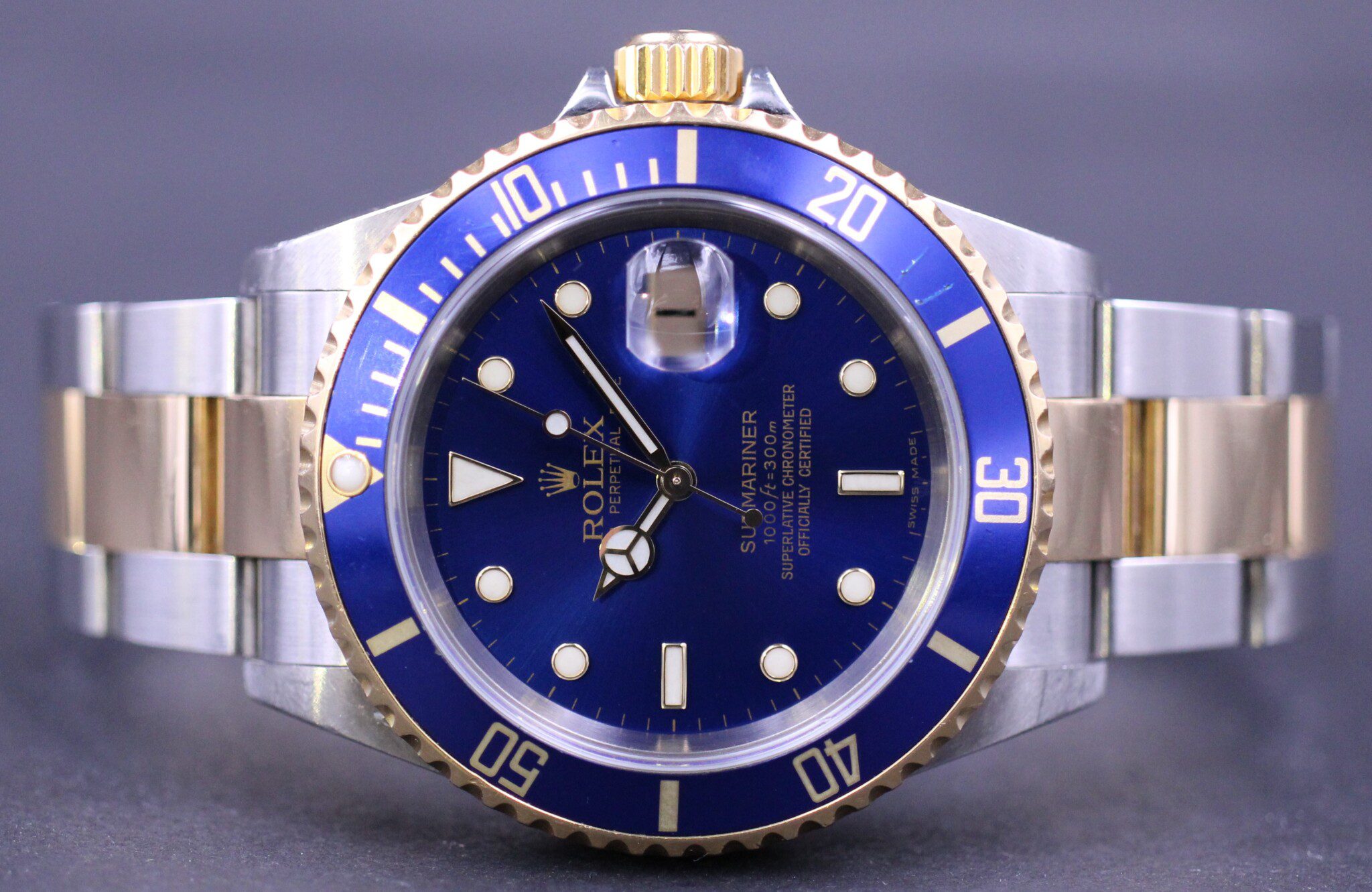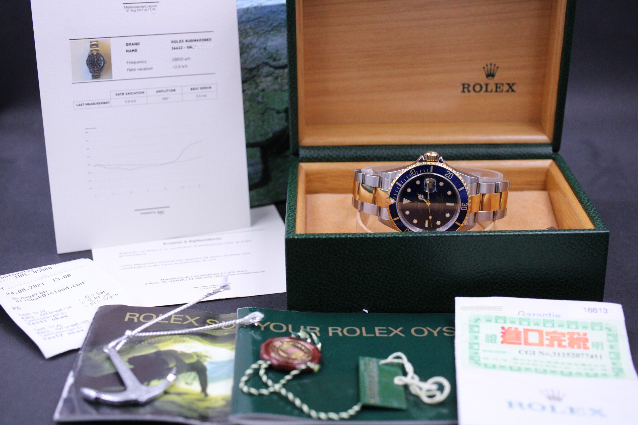 Lækker Rolex Submariner, ref. 16613 udført i guld og stål fra 2006 (D-Serie, serienr. D9xxxxx). Uret er i flot stand og nyserviceret i August 2021