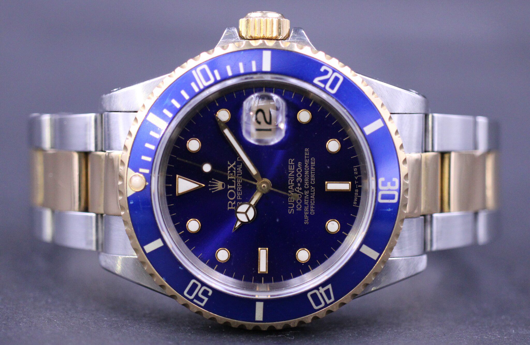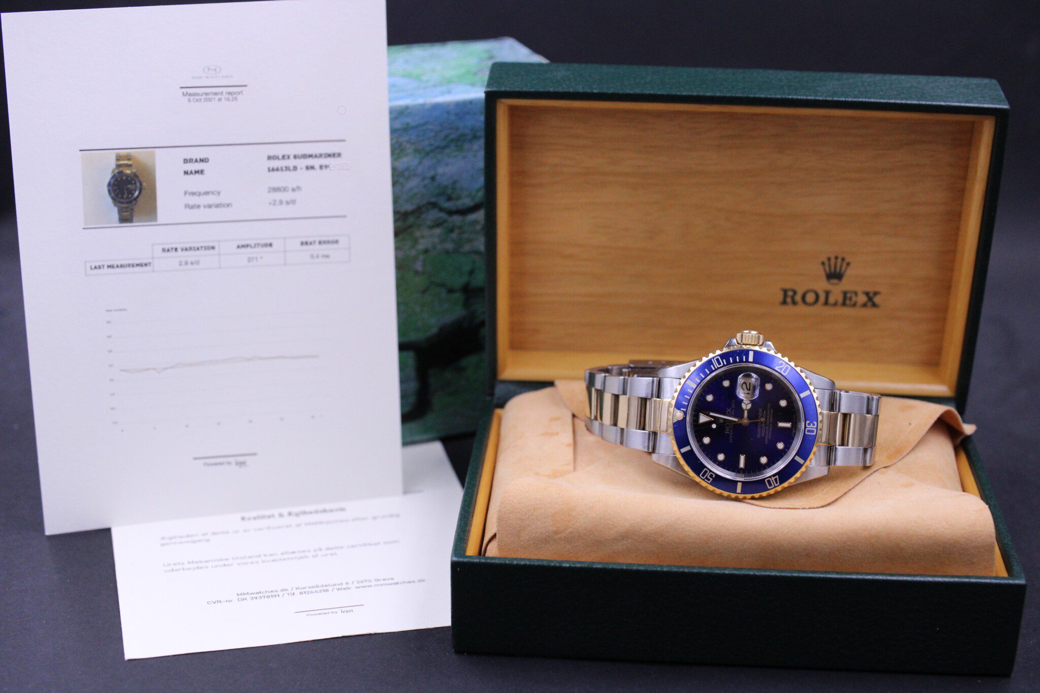 Mærke: Rolex Model: Submariner Ref. nr.: 16613LB Årgang: 1990 Tilbehør: Boks Funktioner: Dato Størrelse: 40mm Stand: 85%