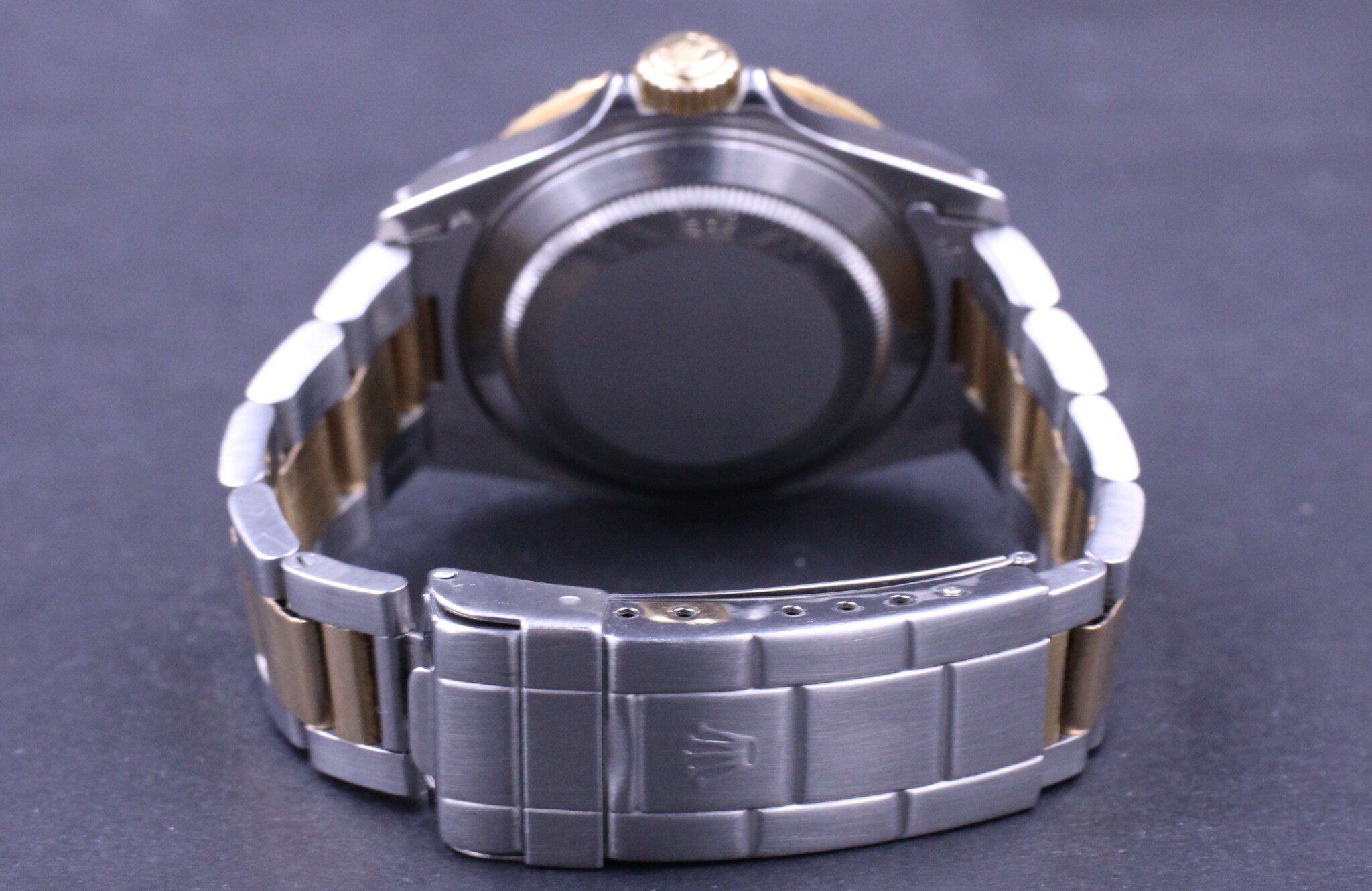 Lækker Rolex Submariner, ref. 16613 udført i guld og stål fra 1990 (E-Serie, serienr. E9xxxxx). Uret er i pæn stand og klar til brug, sidst serviceret i 2019.